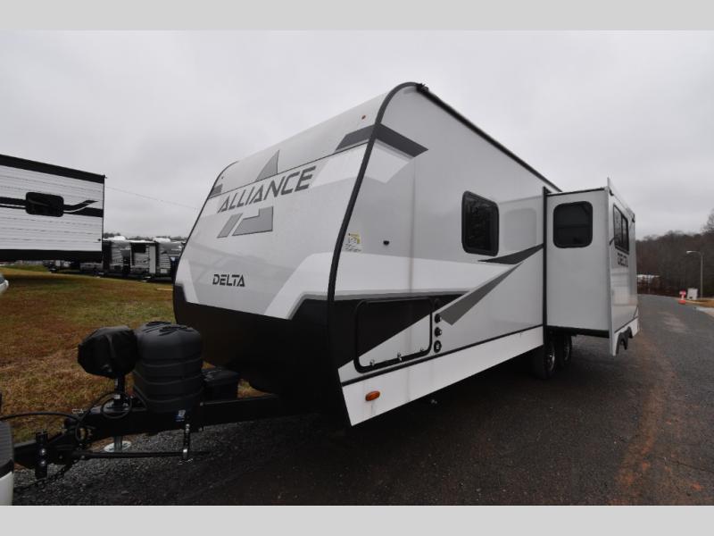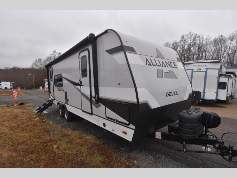The Delta Ultra Lite travel trailers by Alliance RV are perfect for those looking for a lighter tow weight! The fully functional oversized atrium windows will let more natural light in, and the carpet free interior will be appreciated after a weekend at the lake. There are also magnet catches on all cabinets, soft close cabinet doors, and a kitchen toe kick with LED accent lighting. The exterior includes multiple temperature controlled spray ports, exterior awning controls, and Goodyear Endurance tires. Start a new adventure today in a Delta Ultra Lite travel trailer!