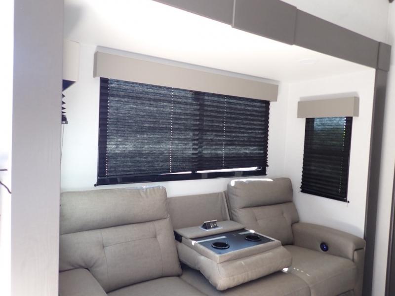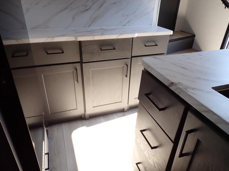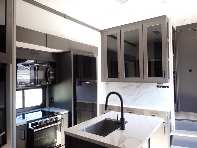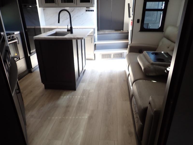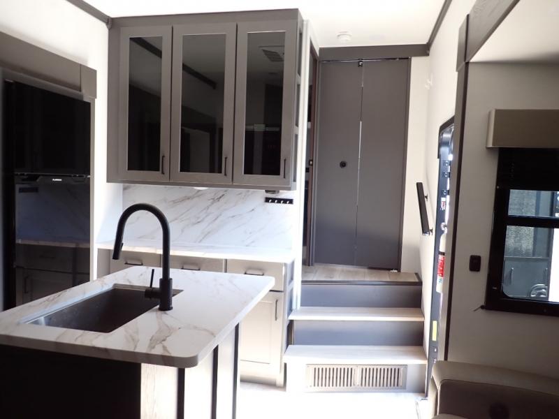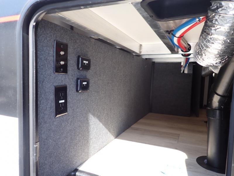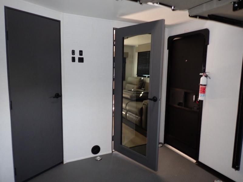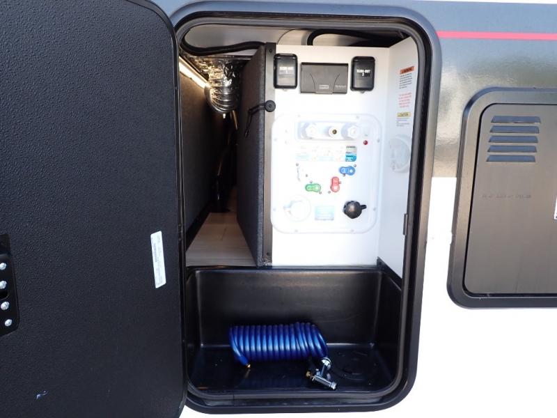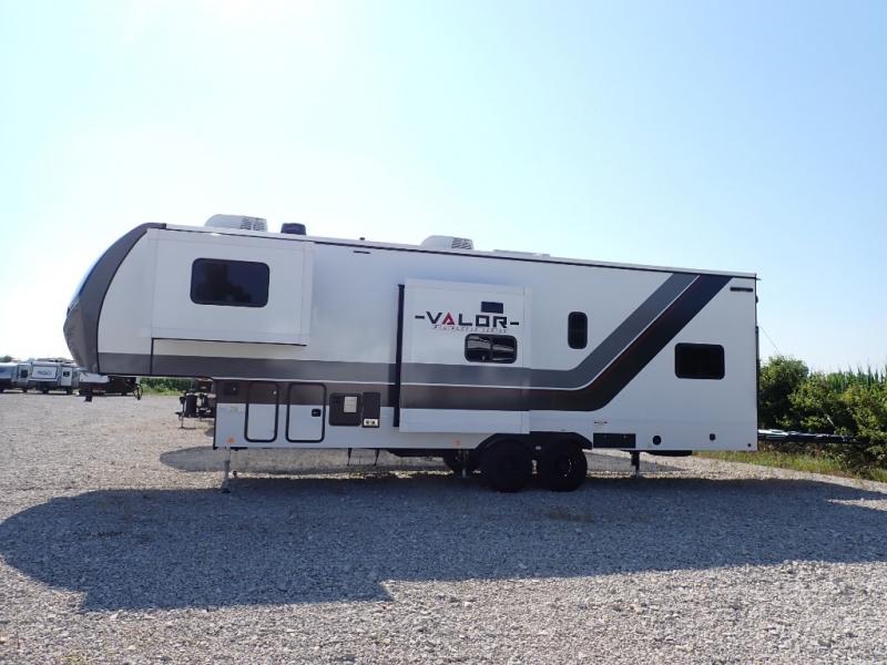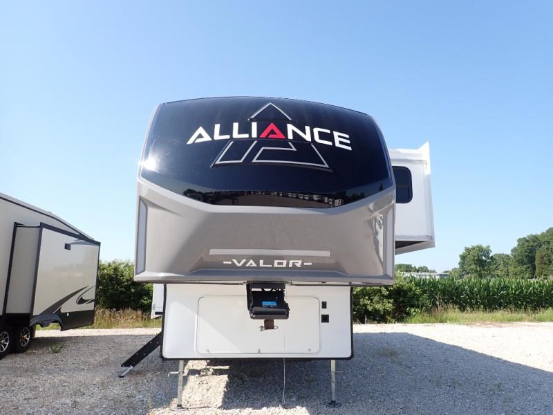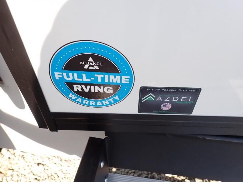 With any Valor All-Access toy hauler by Alliance RV you will be getting a travel trailer or fifth wheel with exceptional features at a great value! There is a painted fiberglass front cap, Mylar reinforced exterior seals, Azdel-backed fiberglass sidewalls, and a walk-on roof with a seamless PVC roof covering for added strength and durability. The 101" wide-body Benchmark chassis means you can bring along your larger toys, and the multipoint tie-down system will keep your toys safe and secure on the way to the campground. All of your power needs will be met with the Masters of 12 Volt Package that includes a 12V JBL sound system and USB charging stations throughout, plus the Off The Grid Pack comes with a 400 watt solar panel, 40 amp charge controller, and generator prep to keep you going all week long. Some of the interior comforts you'll enjoy are commercial grade vinyl flooring with no carpet so you can easily clean up, black cabinetry hardware, residential LED recessed ceiling lights, and so much more!
