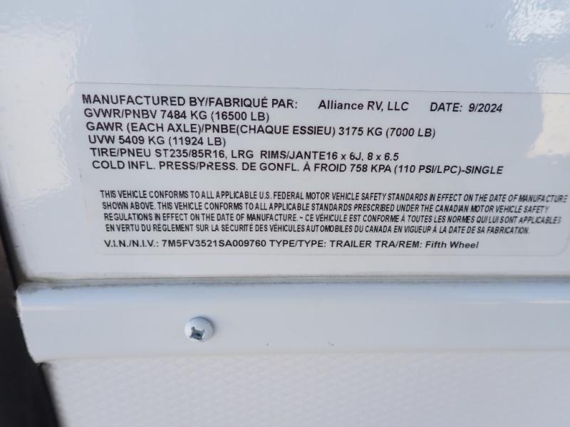 Used 2025 Alliance RV Valor All-Access 31A10 Toy Hauler Fifth Wheel