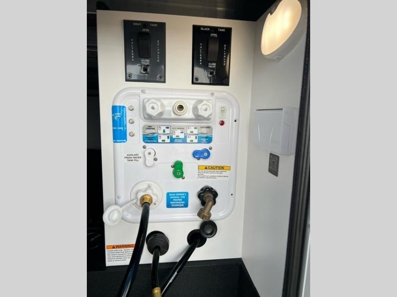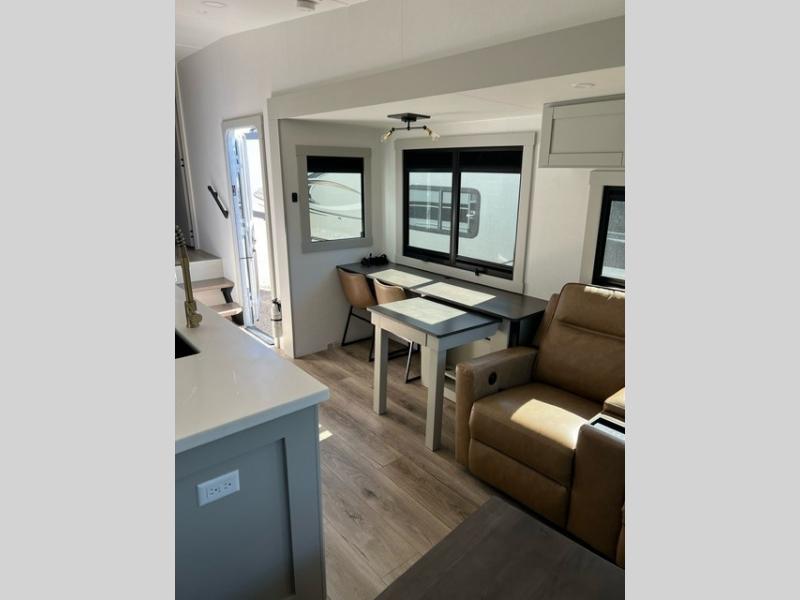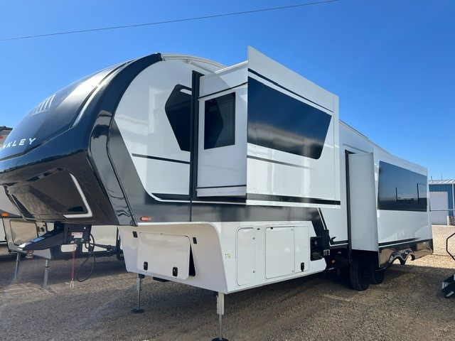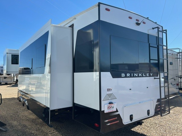 The Brinkley mid-profile Model Z fifth wheels bring you clean lines and an upscale look with plenty of style and exciting new features like the industry first brass plumbing connections. These units also feature an automotive grade front cap, plenty of exterior storage, dual exterior hot and cold showers, and wide stance leveling jacks for easy set up. Residential frameless windows provide a clean look and beautiful views, and ample electrical outlets and 6 USB/USB-C outlets allow all of your electronics and appliances to easily be used and charged.