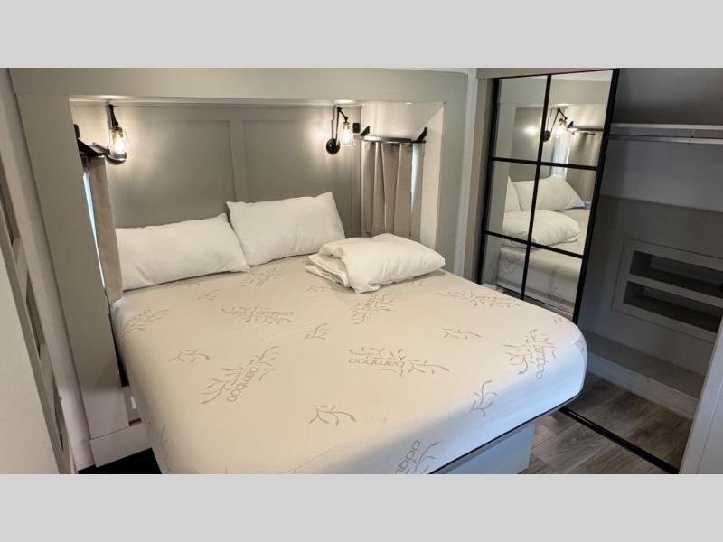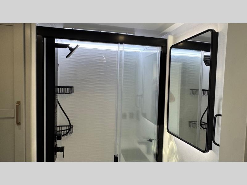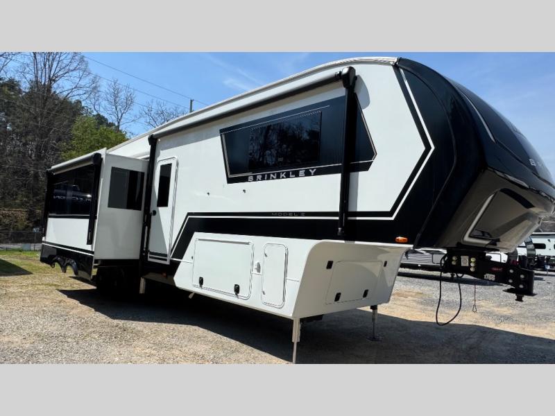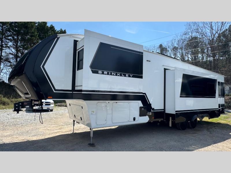 The Brinkley mid-profile Model Z fifth wheels bring you clean lines and an upscale look with plenty of style and exciting new features like the industry first brass plumbing connections. These units also feature an automotive grade front cap, plenty of exterior storage, dual exterior hot and cold showers, and wide stance leveling jacks for easy set up. Residential frameless windows provide a clean look and beautiful views, and ample electrical outlets and 6 USB/USB-C outlets allow all of your electronics and appliances to easily be used and charged.