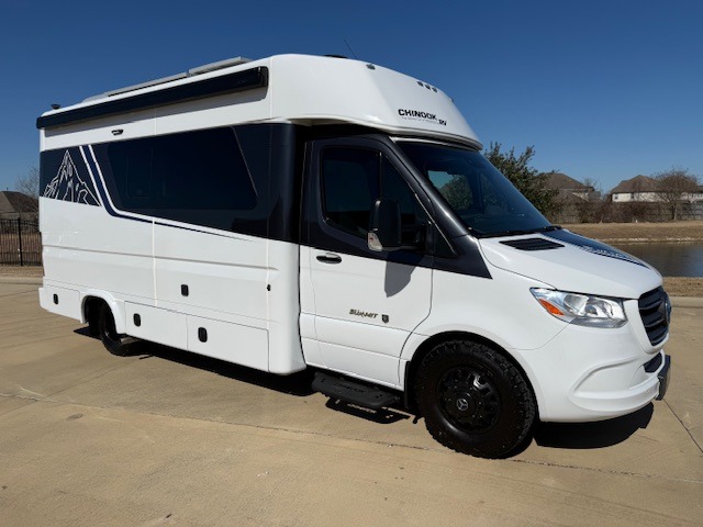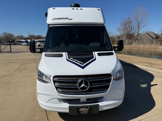 Each one of these Chinook RV Summit Class B+ diesel motorhomes are powered by a Mercedes-Benz Sprinter chassis with a 4 cylinder twin-turbo diesel engine and 9-speed transmission to power your adventures. You'll appreciate the Driver Convenience Package and safety features that include collision warning, a lane keeping system, and side-wind stabilization for a smooth drive. There is also a 4-point leveling system and a Smart Plug with a detachable 30 Amp power cord when you're ready to set up camp. Inside, the stylish interior includes soft touch, padded vinyl finishing, solid surface countertops, shower, and porcelain toilet, plus many more comforts!