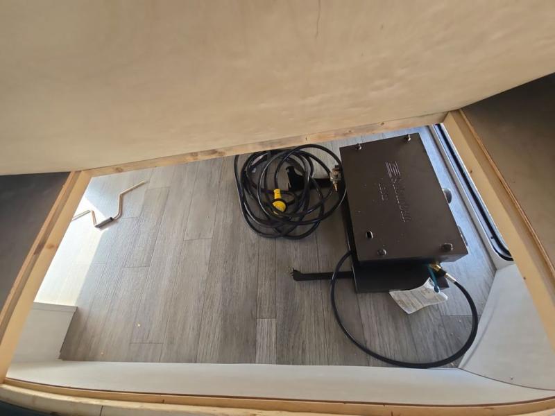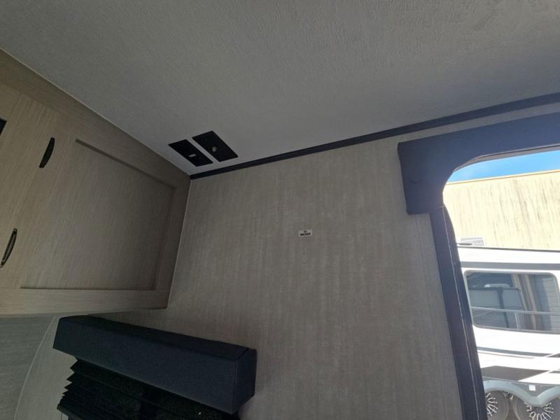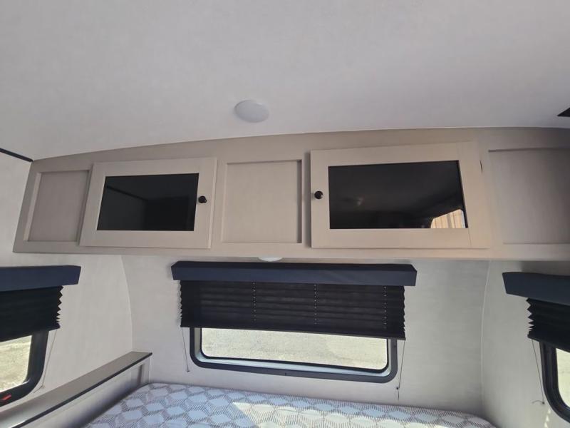 There's a comfortable place for everyone to sleep in this travel trailer with a front 54" x 80" bed and set of 30" x 70" bunk beds! The sofa can even transform into an extra sleeping space for a guest! Enjoy a meal prepared with the two burner cooktop, microwave, and 8 cu. ft. 12V refrigerator, then head outdoors to sit under the 12' power awning. The rear corner bathroom has a tub/shower for you to start your mornings feeling clean and fresh, plus a medicine cabinet to keep your toiletries close. You will have plenty of room to store your outdoor gear between the front exterior pass-through storage area and the rear exterior storage area!