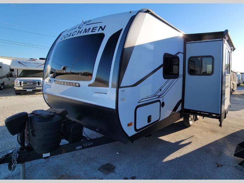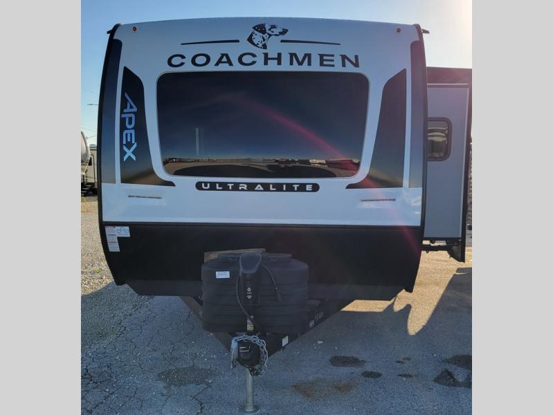 Lightweight living and camping is found with the Apex Ultra-Lite travel trailers by Coachmen. These eco-friendly units are made to last thanks to the Azdel composite sidewalls, the laminated aluminum floor, and the vacuum-bonded laminated crowned roof. Easy lube axles make towing easier than ever, plus there is a friction hinge entrance door, a 200-watt solar panel with a 30 Amp control charger, and slam latch baggage door catches for easy unloading. Some of the interior comforts you'll fall in love with are the one-piece seamless edge countertops, the hard valances with night shades, the matte black hardware, and the Casino Bisque cabinetry. The Apex Ultra-Lite trailers also include a USB charge station, plus a digital TV antenna with cable hook-ups and Wi-Fi capability for the option to stay connected as you camp!