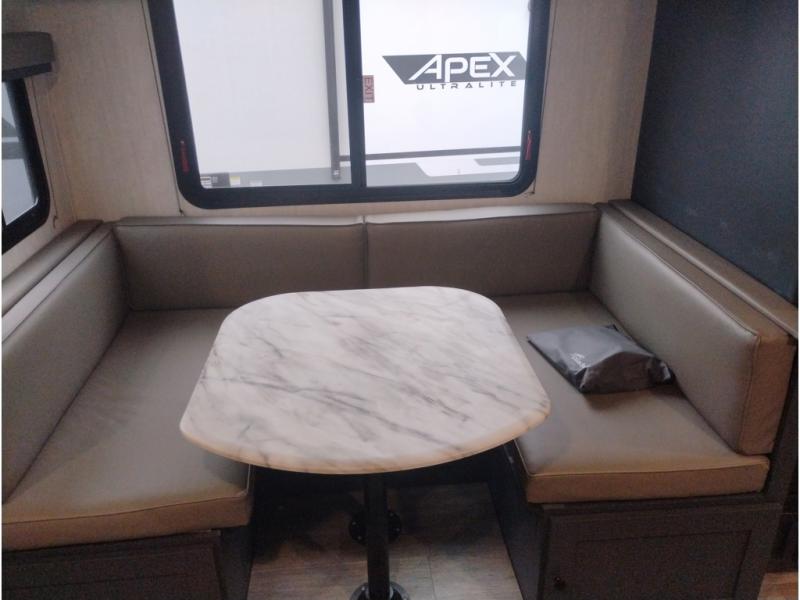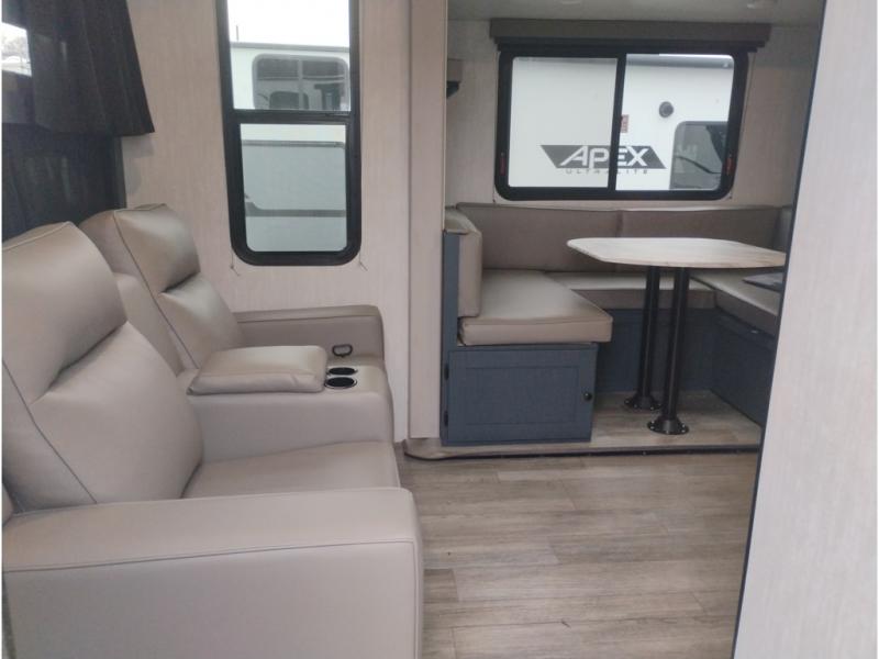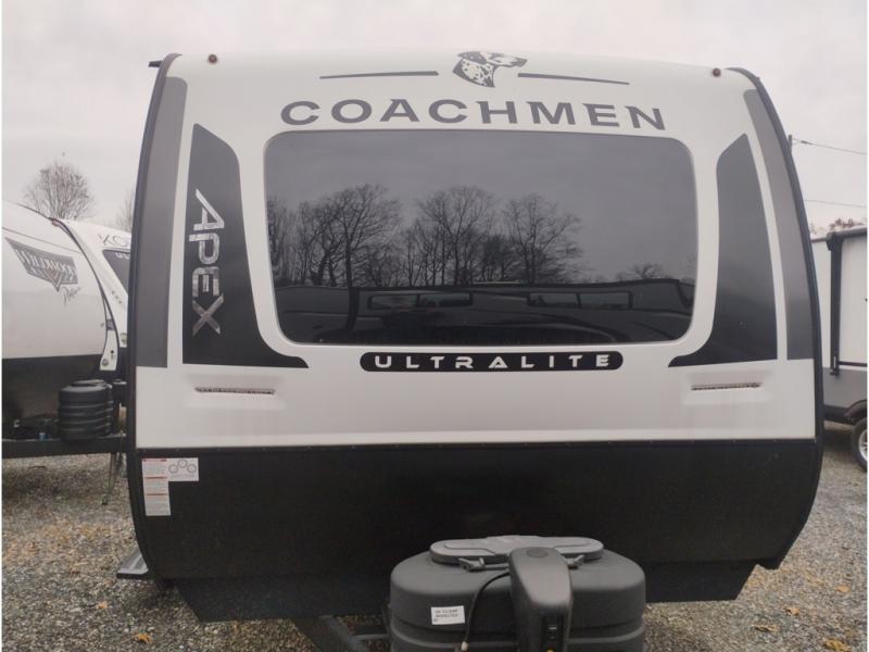 Lightweight living and camping is found with the Apex Ultra-Lite travel trailers by Coachmen. These eco-friendly units are made to last thanks to the Azdel composite sidewalls, the laminated aluminum floor, and the vacuum-bonded laminated crowned roof. Easy lube axles make towing easier than ever, plus there is a friction hinge entrance door, a 200-watt solar panel with a 30 Amp control charger, and slam latch baggage door catches for easy unloading. Some of the interior comforts you'll fall in love with are the one-piece seamless edge countertops, the hard valances with night shades, the matte black hardware, and the Casino Bisque cabinetry. The Apex Ultra-Lite trailers also include a USB charge station, plus a digital TV antenna with cable hook-ups and Wi-Fi capability for the option to stay connected as you camp!