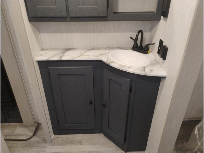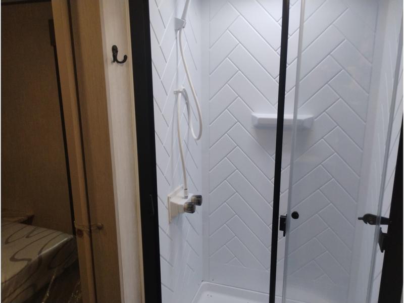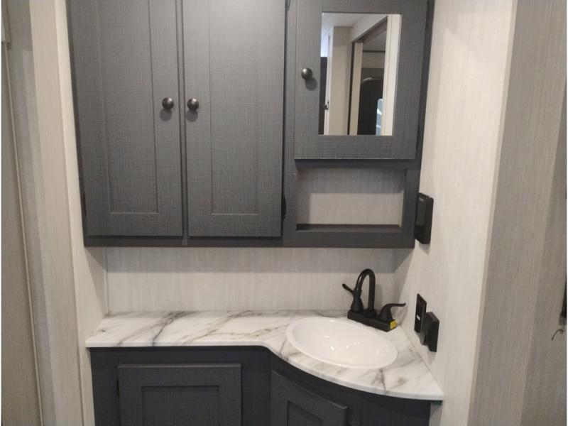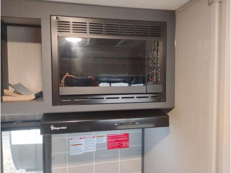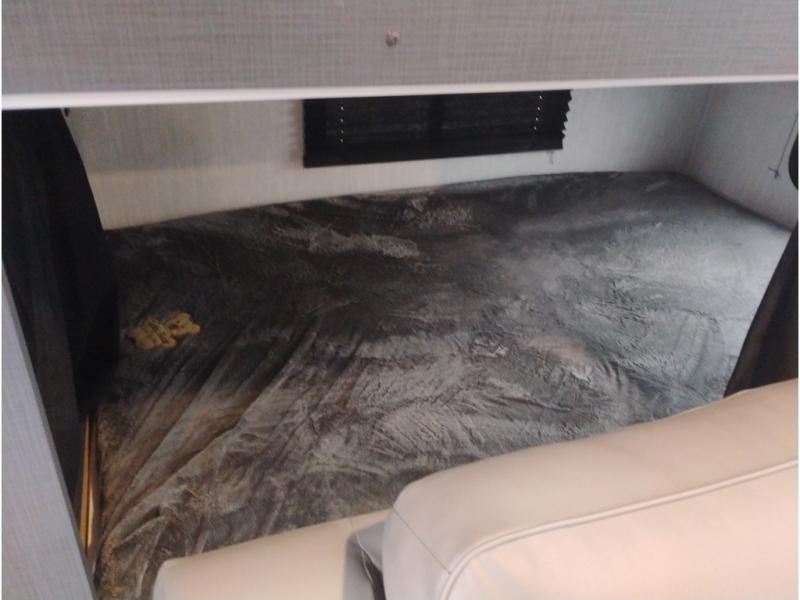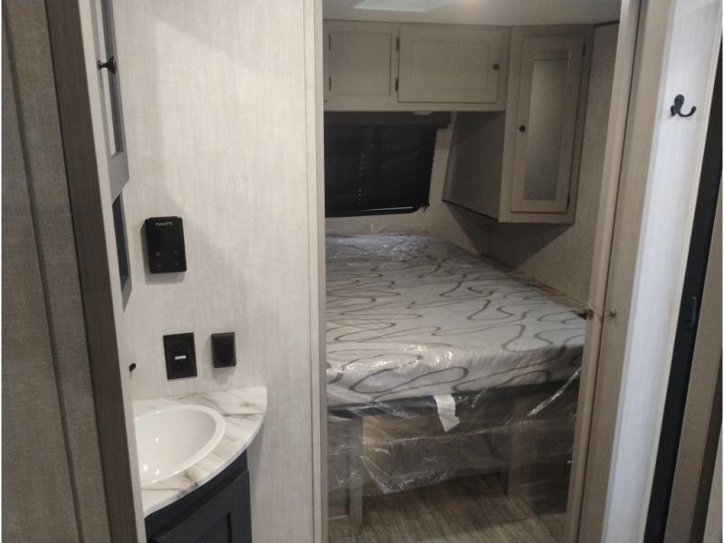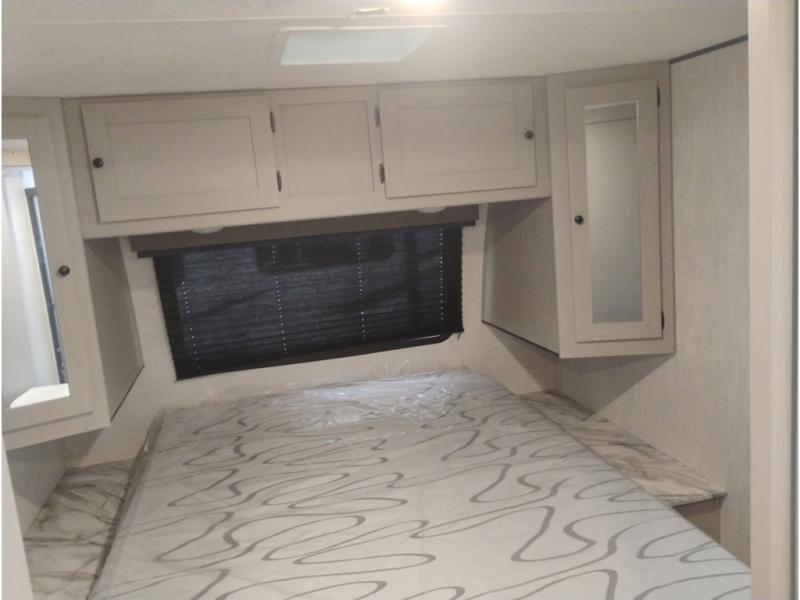 Camping with family or a larger group of friends is easier than ever in this dual entry trailer that can sleep nine people comfortably. The little ones will love the double-size bunks with storage steps, and you'll have the queen bed with super storage all to yourselves. There is also a U-shaped dinette slide and a sofa for even more sleeping space. If the weather is nice, you'll find yourselves outdoors under the 20' power awning and enjoying a snack from the exterior camp kitchen. This model also includes an entertainment center with an LED TV, and you'll find the pantry/storage behind the entertainment center for added convenience.