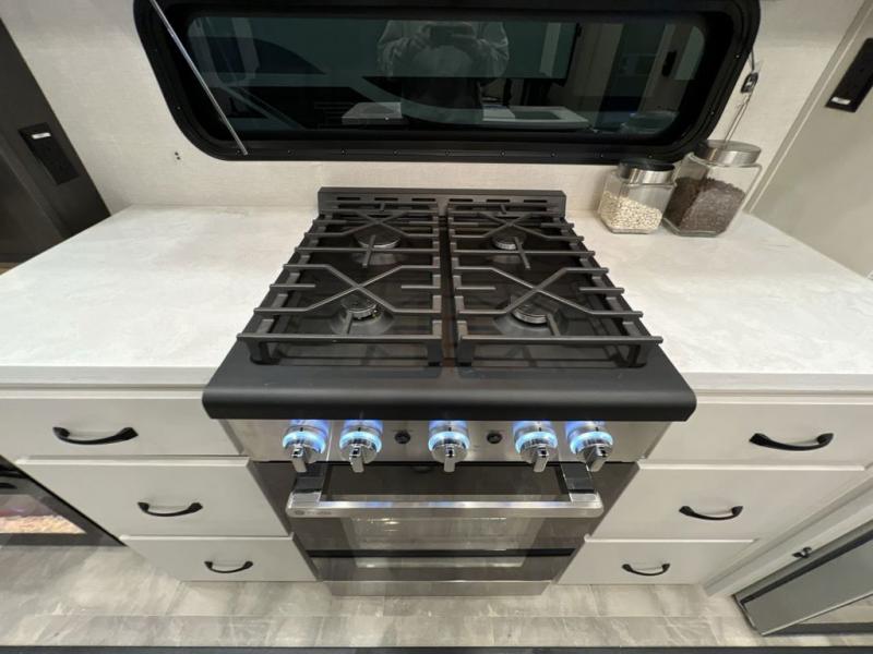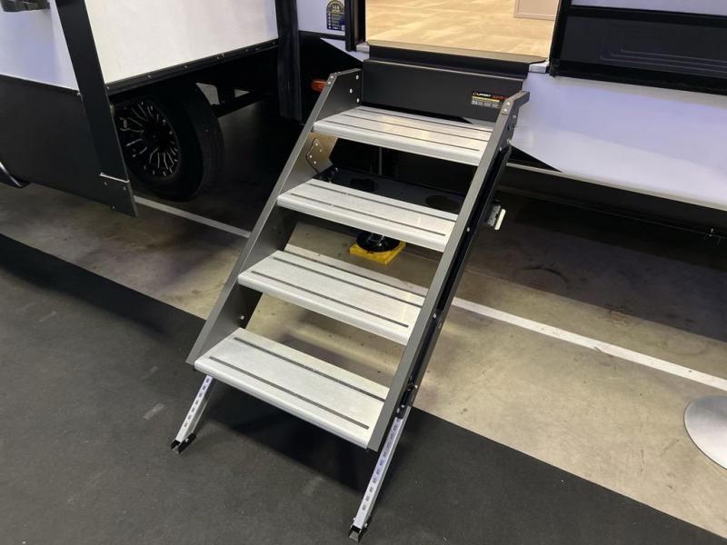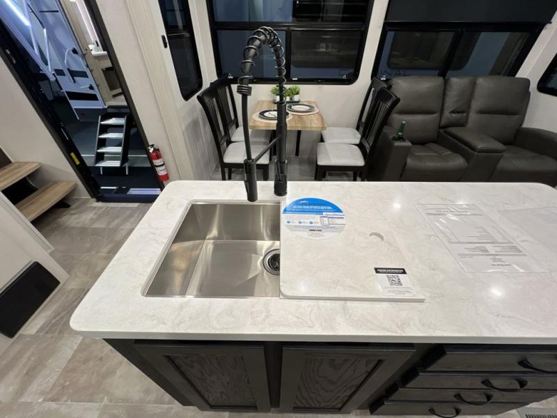 The Brookstone fifth wheels by Coachmen are coming to you with wide-body comfort, home-like amenities, and unique designs for a truly luxurious RV. The Weather Shield+ consists of a 6X double Azdel aluminum cage sidewall system, a Radiant Pro weather barrier system, and more that will help you extend your camping season or go full-time. Head inside to find solid surface countertops in the kitchen, an 4K Smart LED TV in the living room, slow rise roller night shades, and the list of comforts goes on! The Brookstone also includes 6-point electric auto-leveling, four Solid Step entry steps, an electric awning with LED lights, and many more exterior conveniences!