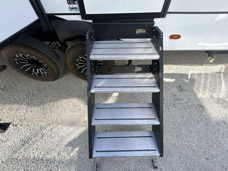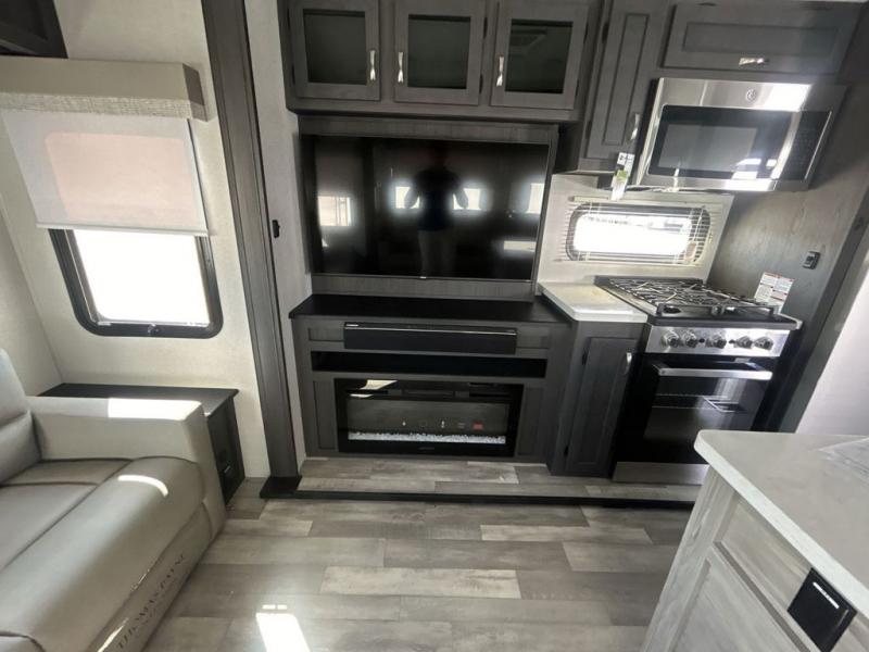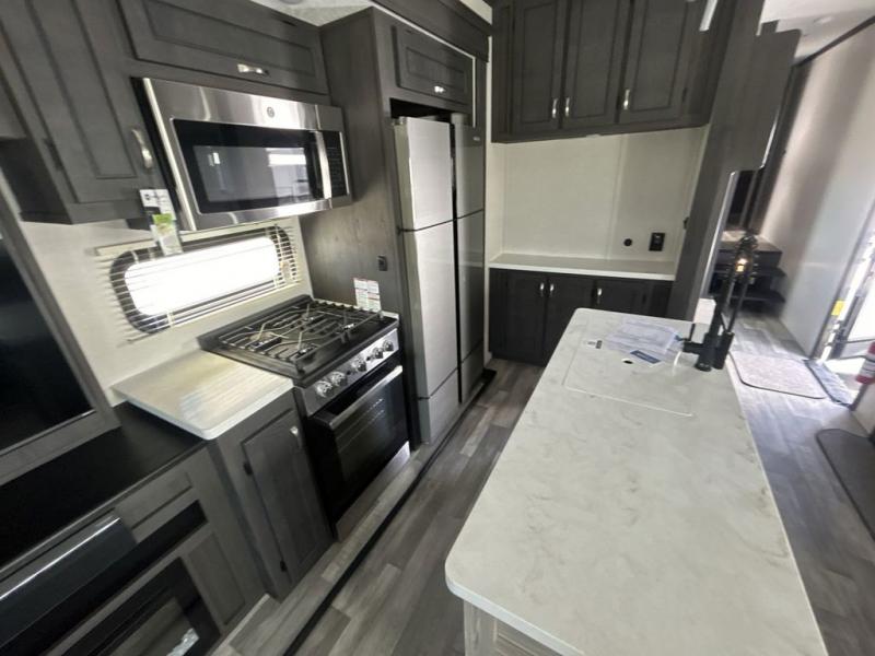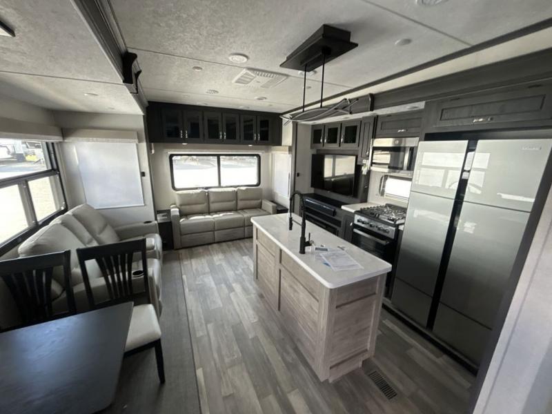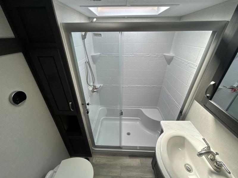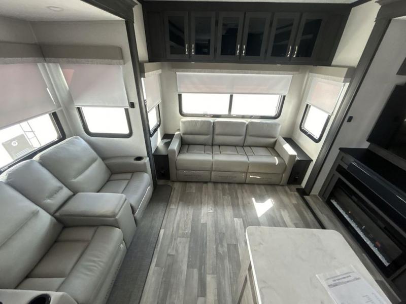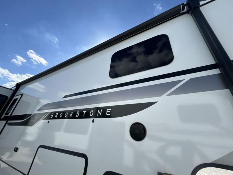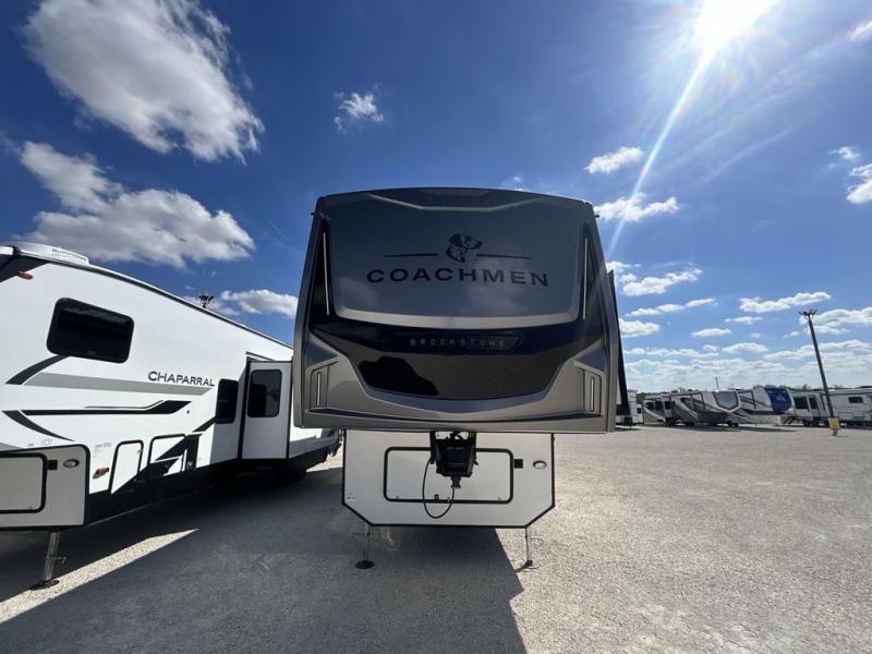 The Brookstone fifth wheels by Coachmen are coming to you with wide-body comfort, home-like amenities, and unique designs for a truly luxurious RV. The Weather Shield+ consists of a 6X double Azdel aluminum cage sidewall system, a Radiant Pro weather barrier system, and more that will help you extend your camping season or go full-time. Head inside to find solid surface countertops in the kitchen, an 4K Smart LED TV in the living room, slow rise roller night shades, and the list of comforts goes on! The Brookstone also includes 6-point electric auto-leveling, four Solid Step entry steps, an electric awning with LED lights, and many more exterior conveniences!