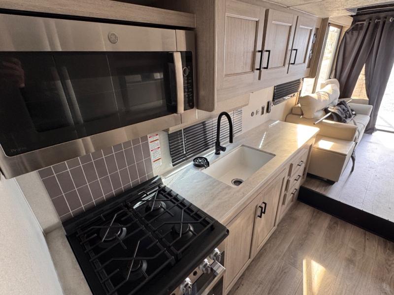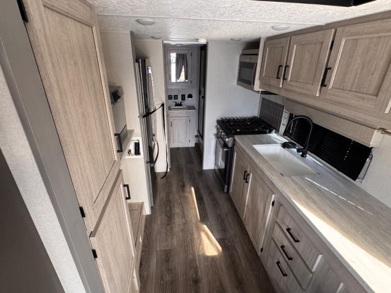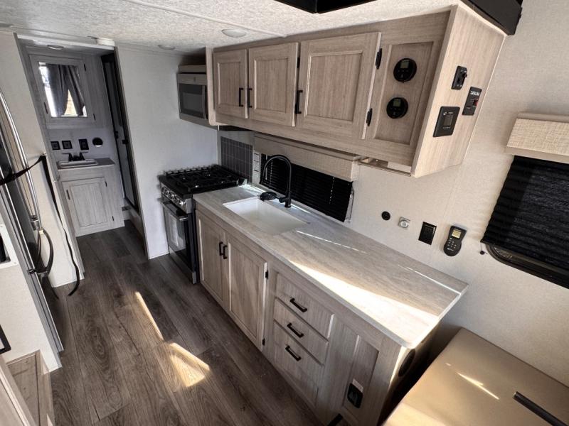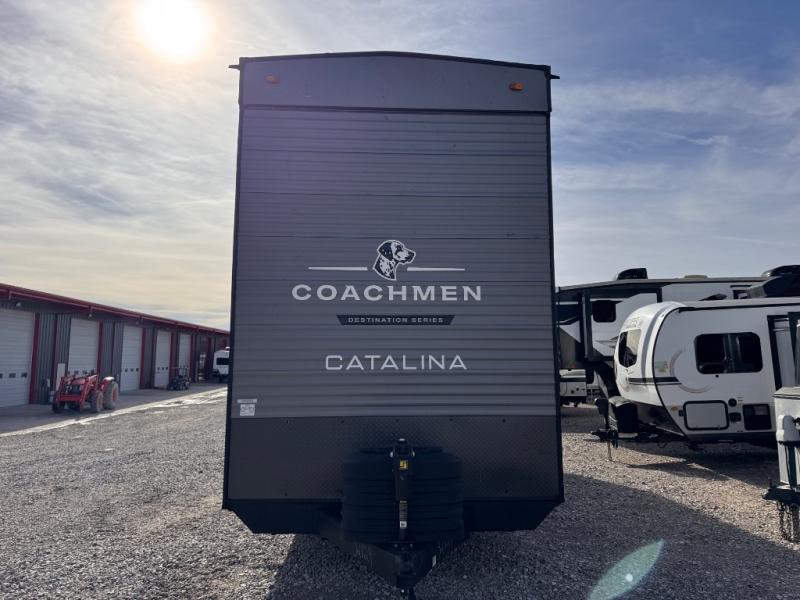 With any Catalina Destination trailer by Coachmen, you will enjoy comfortable extended stays wherever you decide to set up camp! The full length frame outriggers add strength to each unit, along with a seamless Alpha Roof membrane and Norco electromagnetic, powder coated chassis. You will love the open views provided by the large front bay windows, plus there are GE appliances, woodplank linoleum flooring, and hard valance window treatments to make your space feel more like home. Head outside to find a convenient "Leash Link" quick hookup D-ring for your furry friends, premium JBL exterior speakers, flush mount baggage doors for your gear, and the list of amenities goes on!
