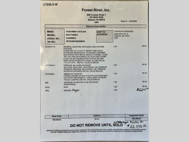 CONTACT SALES DEPARTMENT FOR ADDITIONAL INFO.