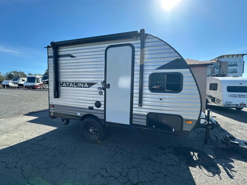 With any Catalina Summit Series 7' by Coachmen RV, you can create an easier adventure with the versatility and simplicity of the shorter lengths and lighter weights! Each includes a premium exterior graphics package, a smooth HD aluminum radius front, and EZ lube axles with leaf spring suspension. The exterior offers a heavy duty standard tongue jack, a diamond plate rock guard to protect against road debris, exterior RG-6 coax cabling and satellite prep, rear view camera prep, and flush mount baggage doors with radius corners for your outdoor gear. Inside, you will enjoy a premium JBL interior speaker, USB charging ports, seamless Thermofoil countertops throughout, a deep basin farm style sink for easy cleanup, and GE kitchen appliances. It's time to choose an affordable and maneuverable single axle trailer today!