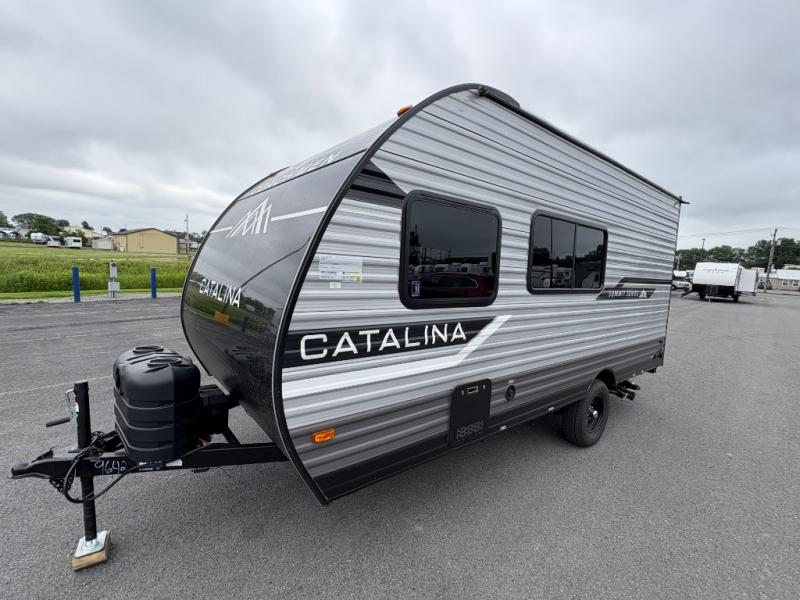 With any Catalina Summit Series 7' by Coachmen RV, you can create an easier adventure with the versatility and simplicity of the shorter lengths and lighter weights! Each includes a premium exterior graphics package, a smooth HD aluminum radius front, and EZ lube axles with leaf spring suspension. The exterior offers a heavy duty standard tongue jack, a diamond plate rock guard to protect against road debris, exterior RG-6 coax cabling and satellite prep, rear view camera prep, and flush mount baggage doors with radius corners for your outdoor gear. Inside, you will enjoy a premium JBL interior speaker, USB charging ports, seamless Thermofoil countertops throughout, a deep basin farm style sink for easy cleanup, and GE kitchen appliances. It's time to choose an affordable and maneuverable single axle trailer today!