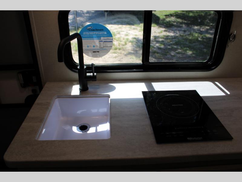With any Catalina Summit Series 7' by Coachmen RV, you can create an easier adventure with the versatility and simplicity of the shorter lengths and lighter weights! Each includes a premium exterior graphics package, a smooth HD aluminum radius front, and EZ lube axles with leaf spring suspension. The exterior offers a heavy duty standard tongue jack, a diamond plate rock guard to protect against road debris, exterior RG-6 coax cabling and satellite prep, rear view camera prep, and flush mount baggage doors with radius corners for your outdoor gear. Inside, you will enjoy a premium JBL interior speaker, USB charging ports, seamless Thermofoil countertops throughout, a deep basin farm style sink for easy cleanup, and GE kitchen appliances. It's time to choose an affordable and maneuverable single axle trailer today!