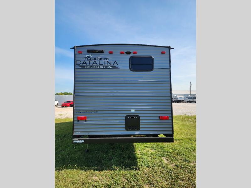 With any Catalina Summit Series 8 by Coachmen you will enjoy an affordable travel trailer packed with at-home comforts! The solid construction includes a Norco electromagnetic powder coated chassis, a seamless Alpha roof membrane, and full length frame outriggers for maximum support and durability. EZ lube axles with leaf spring suspension and self adjusting brakes provide smooth towing from home to campground, and the premium exterior graphics package is sure to turn heads as you travel down the highway. You will love the features included, such as a JBL Aura Cube media center, magnetic baggage door latches, 4,000 lumen interior touch lighting, and the list goes on!