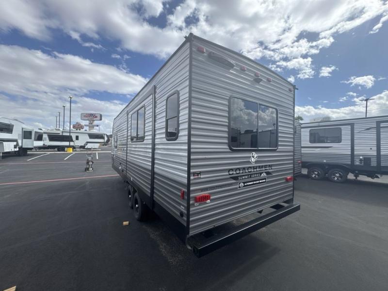 With any Catalina Summit Series 8 by Coachmen you will enjoy an affordable travel trailer packed with at-home comforts! The solid construction includes a Norco electromagnetic powder coated chassis, a seamless Alpha roof membrane, and full length frame outriggers for maximum support and durability. Dexter EZ lube axles with leaf spring suspension and self adjusting brakes provide smooth towing from home to campground, and the premium exterior graphics package is sure to turn heads as you travel down the highway. You will love the features included, such as a JBL Aura Cube media center, magnetic baggage door latches, 4,000 lumen interior touch lighting, and the list goes on!