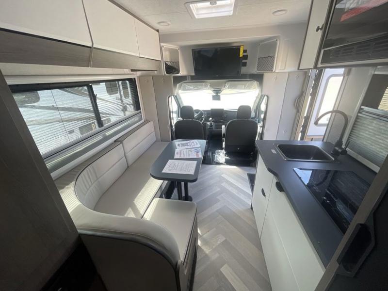 The Cross Trail EV Class C gas motorhomes by Coachmen offer livable and storage friendly coaches with an interior/exterior Smart TV, extra large kitchen counters, and large sliding tinted windows. Also included is the Renogy Empowered state-of-the-art hybrid electrical system designed to operate every coach function from battery power, including the A/C, and is convenient for operating systems while traveling without the use of a generator. Each has a fuel-friendly Ford transit chassis, Azdel composite vacuum bonded sidewalls, and a CrossFlex roof membrane, providing more puncture resistance. And the available all-wheel drive means you can go off the beaten path if you choose that option!
