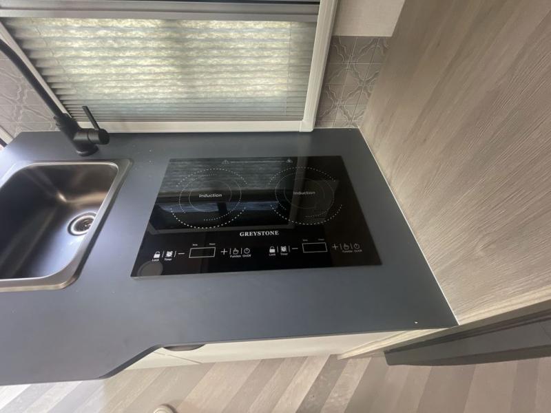 When you enjoy relaxing indoors this coach offers two areas; the rear corner with a double-size Murphy bed, and a J-lounge behind the driver's seat that includes an 18" extension. In the morning, you can prepare eggs and bacon on the two burner induction cooktop, or make instant oatmeal in the microwave oven. The 14' power awning will provide much wanted shade during the day when relaxing outdoors, and the rear corner full bath will allow you to clean up just like you would at home.