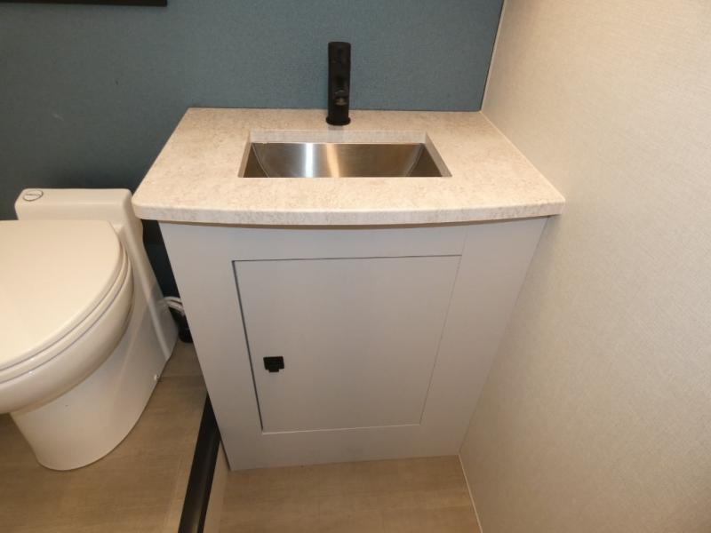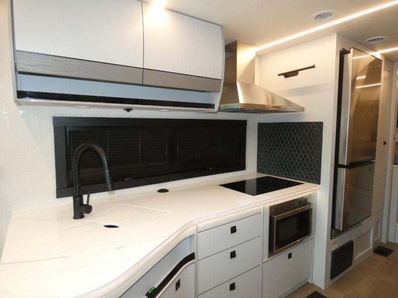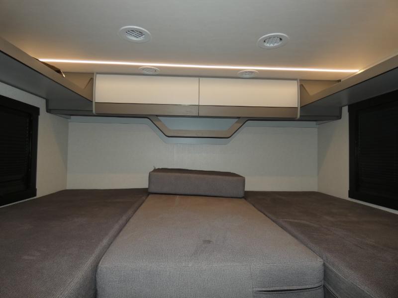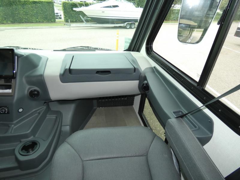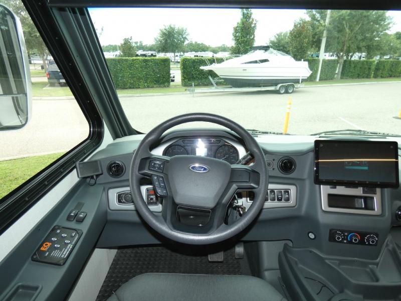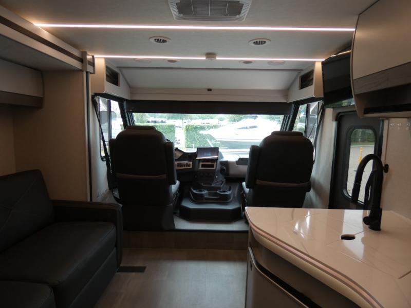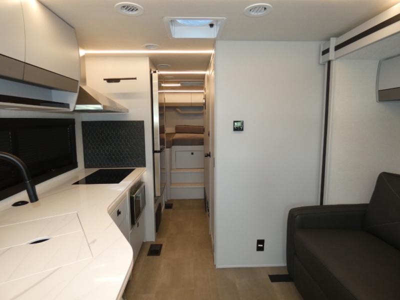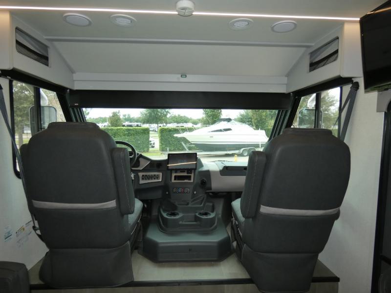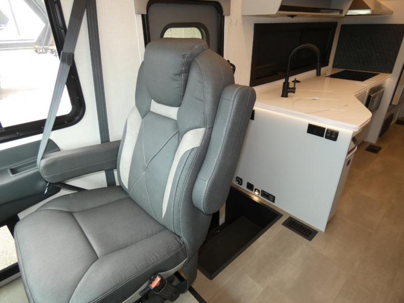 You're sure to have a great time in this sleek motorhome for two! Once you arrive at your destination, the reclining/swivel captain's seats can become a part of the living room where you'll also find a slide out with recliners/dinette. And if you're needing more sleeping space, just choose the optional sofa with a sleeper option in place of the dinette! You can then make lunch on the induction cooktop and grab a cold drink from the stainless steel double door refrigerator. The full bath includes a glass shower door, an on-demand water heater, and a shower skylight to let natural light in. Head to the rear bedroom where you can get a great night's rest on the two twin beds with a nightstand in between to set your phone and book on. There is also a 32" bedroom TV so you can watch movies in bed!