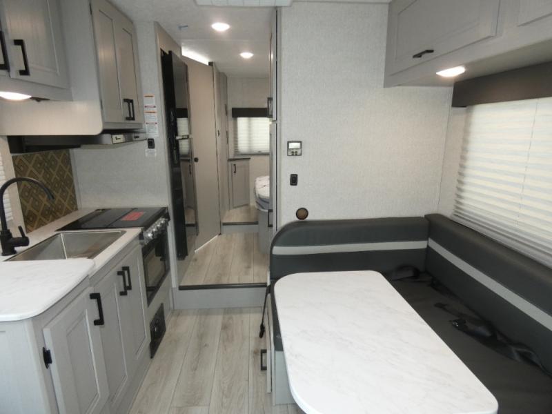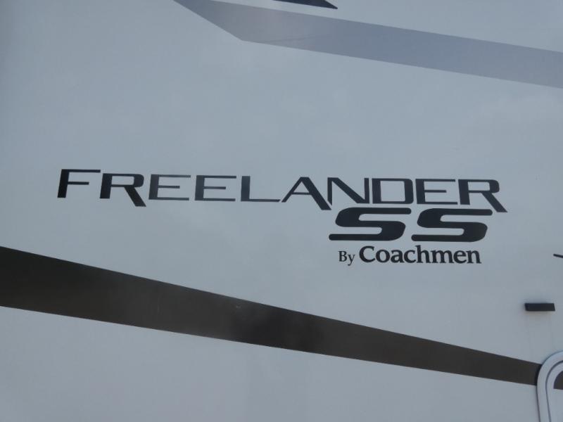 With any Freelander SS Class C gas motorhome by Coachmen, you will find a quality constructed coach for all your journeys. There is AlphaPly TPO seamless one-piece roof material and a max-length power awning with an LED light strip so you can enjoy evenings outdoors. You will also find a molded fiberglass front cap, a rotocast rear warehouse storage compartment, and an upgraded exterior safety grab handle. The mandatory SS Package includes a tankless water heater, running boards, and a towing hitch for your hauling needs. Head inside to enjoy the premium one-piece Thermofoil countertops and vinyl flooring, brushed nickle hardware, pleated night shades, and many more comforts.