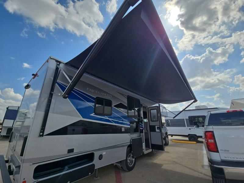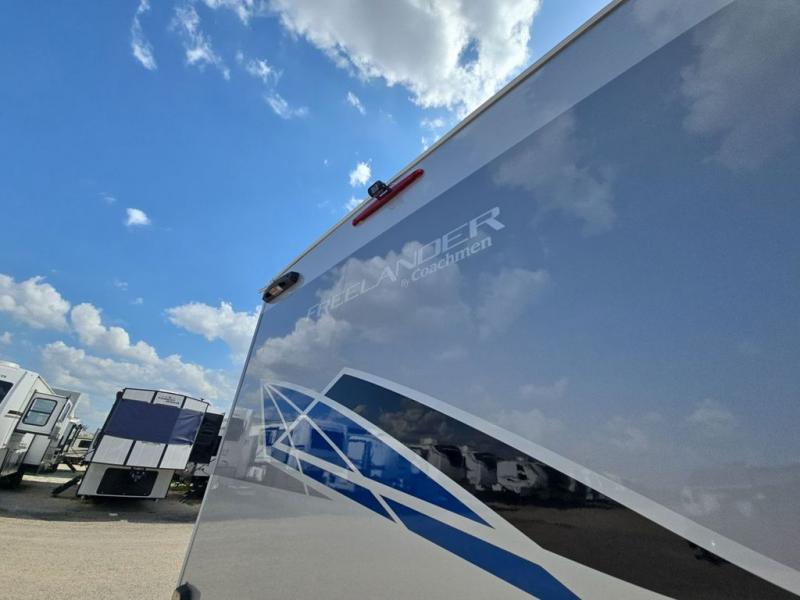 The Freelander Class C gas motorhome by Coachmen is a wonderful choice for anyone looking to get out on the road. A wide variety of floorplans and features offers something for everyone. The Azdel composite sidewalls and seamless one-piece roof membrane provide a solid structure to enjoy all your trips. Conveniences like storage above entrance door with an HDMI and charge station and reclining cockpit seats are standard, along with a rear color backup camera, a premium showerhead and faucet, and one-piece thermofoil countertops. The mandatory Explorer Package includes an exterior shower to rinse off before entering inside and an on-demand tankless water heater for hot water fast. Come find your favorite one today!