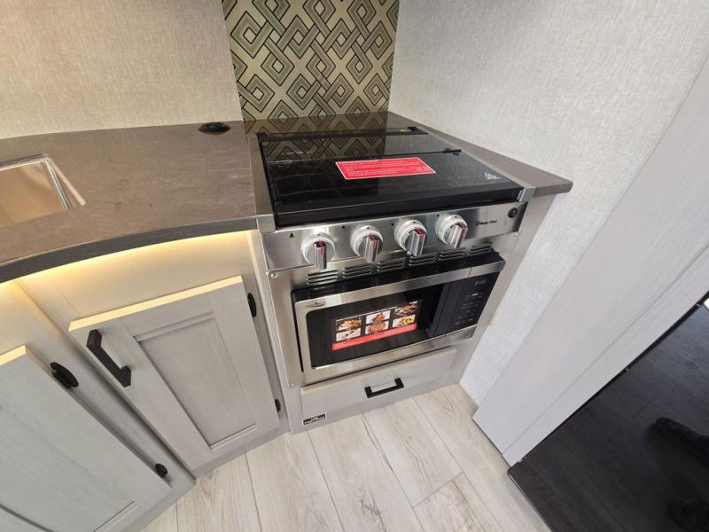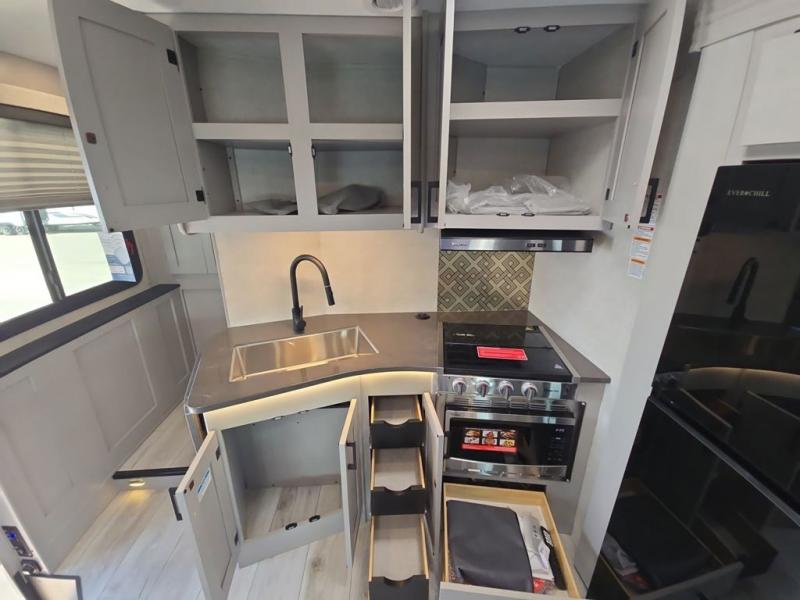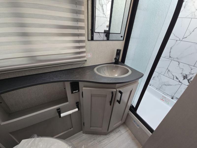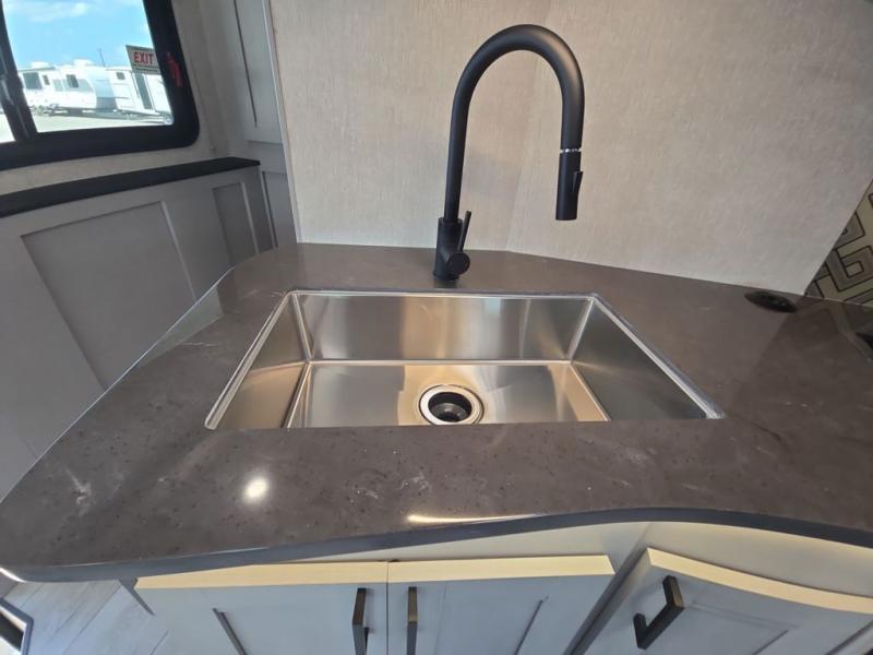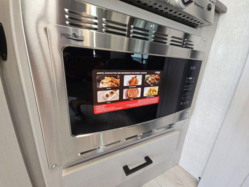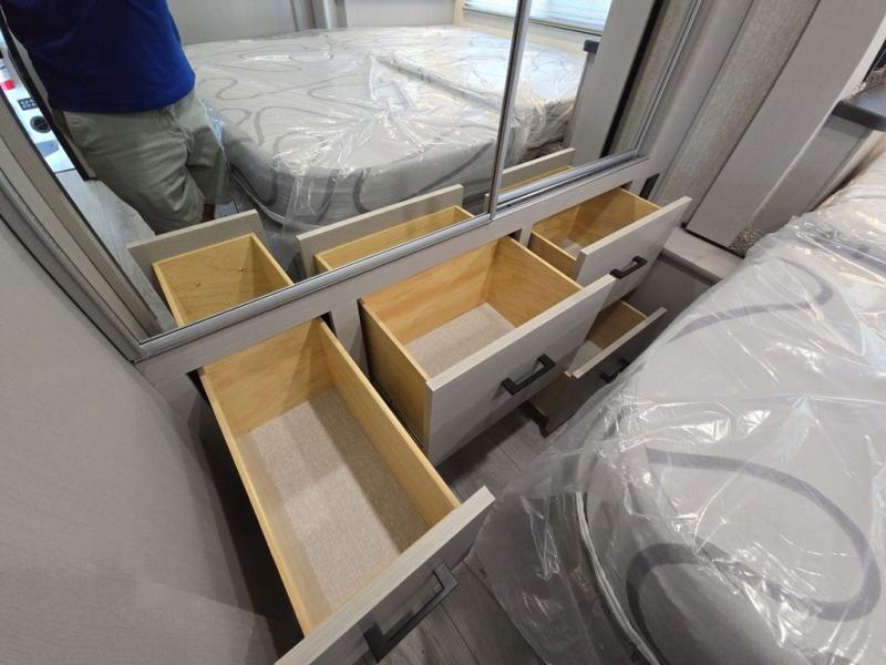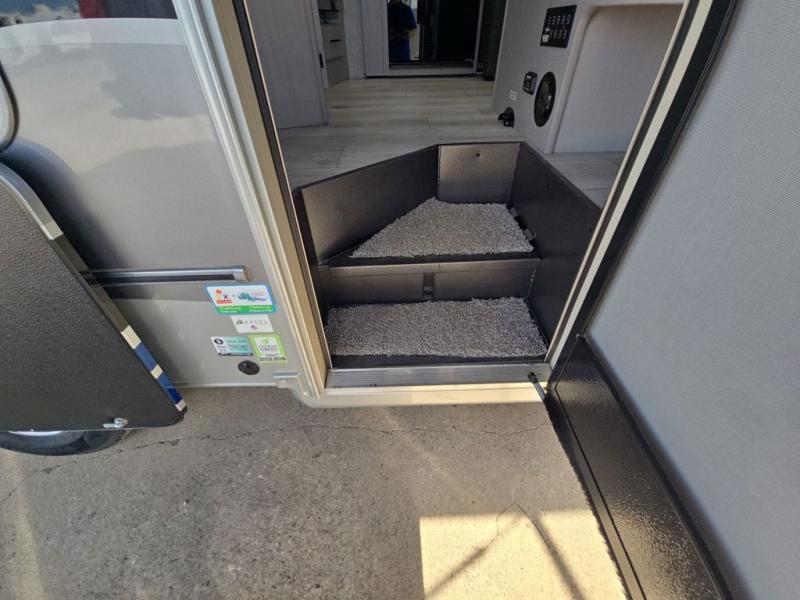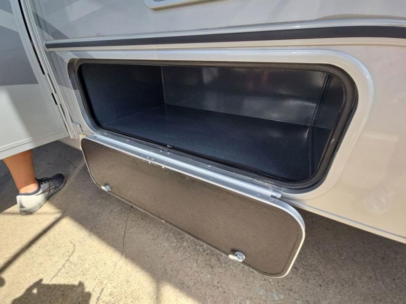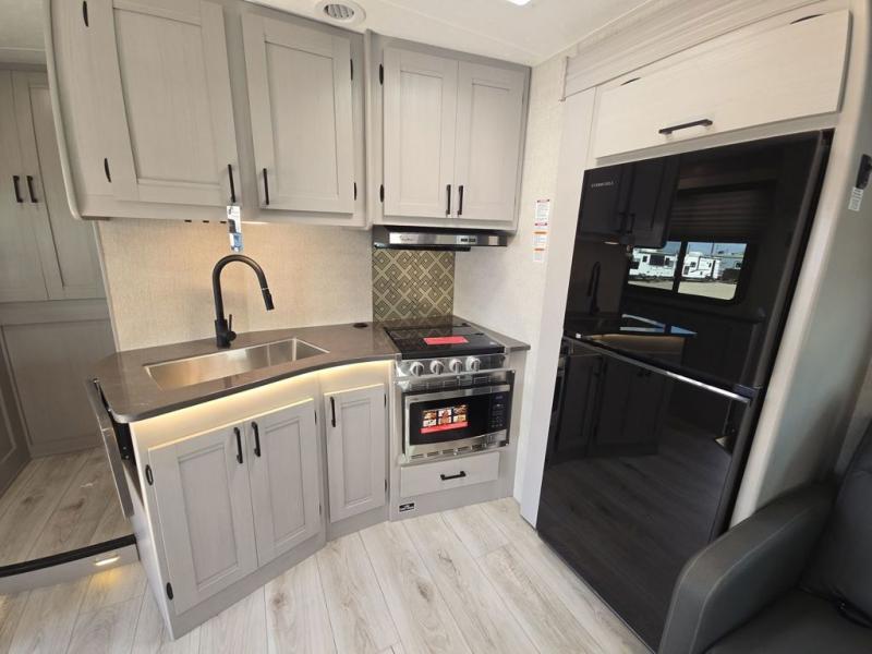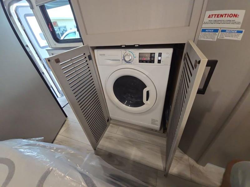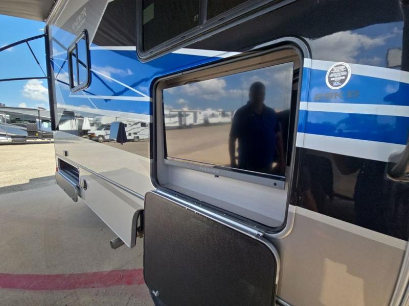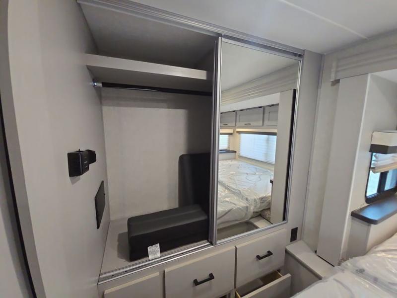Enjoy many fun trips in this spacious motorhome! Step up to the rear private bedroom with a 72” x 80 king bed, and stow all your clothes in the wardrobe. Adjacent to the bedroom is a rear corner bath with a linen closet which even has room for an optional washer and dryer. The center kitchen has an angled countertop with an extension to allow for maximum cooking space, and a 12V refrigerator stows all your snacks. You’ll enjoy those meals on the J-Lounge or relax on the facing sofa. Overhead you’ll find plentiful cabinets for storage plus a TV. Outside under the power awning is an optional exterior entertainment center. This model also includes the CRV Supersprings Ride with heavy duty stabilizer bars, chassis electronic stability control, SumoSprings front shock absorbers, and more!