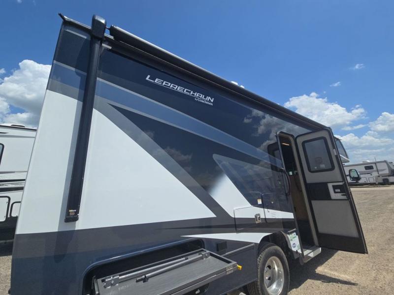 With each Leprechaun Class C gas motorhome by Coachmen you will enjoy "better" interior appointments, like the residential-sized beds, on-demand tankless water heater, and 15,000 BTU A/C. A dash radio and a backup monitor will let you easily navigate the open road like pro. There are also pleated night shades inside, along with premium vinyl flooring, a shower skylight, and USB charging ports to name a few comforts and conveniences. The Leprechaun is constructed with composite sidewall and cabover floor construction plus a seamless one-piece roof material for a durable motorhome made to last.