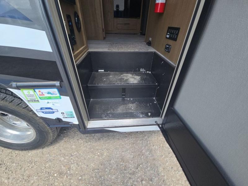 The worst thing you do could is pass up this Leprechaun Class C gas motorhome! This coach is filled with exceptionally helpful amenities, like the flip-down extension in the kitchen, the J-lounge with 18" extension, the full bathroom to stay clean throughout your trip. You have lots of great options with this coach because there is an optional outdoor kitchen table you can add as well as an optional outdoor entertainment center or optional power recliners. The two slides create extra space on the interior for you to relax, and the swing-arm TV will be fun to watch.