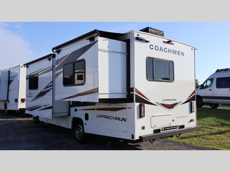 With each Leprechaun Class C gas motorhome by Coachmen you will enjoy "better" interior appointments, like the residential-sized beds, on-demand tankless water heater, and 15,000 BTU A/C. A dash radio and a backup monitor will let you easily navigate the open road like pro. There are also pleated night shades inside, along with premium vinyl flooring, a shower skylight, and USB charging ports to name a few comforts and conveniences. The Leprechaun is constructed with composite sidewall and cabover floor construction plus a seamless one-piece roof material for a durable motorhome made to last.