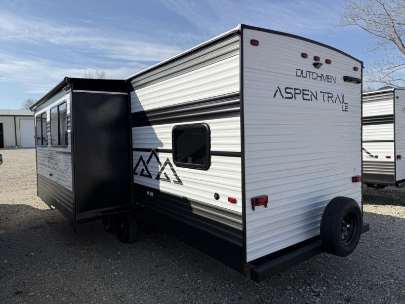 With any Aspen Trail LE travel trailer by Dutchmen, you will have front diamond plate protection, magnetic baggage door catches, and easy lube axles for smooth towing. The interior offers a Home Series interior design collection for an at-home feel, full extension drawer guides throughout, oversized windows, pleated shades, and no carpet to quickly clean up sand and water from the lake. You'll also appreciate the high efficiency furnace, on-demand tankless water heater, and the Solar Spirit Packages for off-grid capabilities. Make your selection today and enjoy a smaller, lighter-weight RV!
