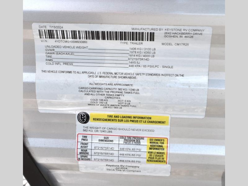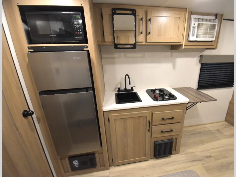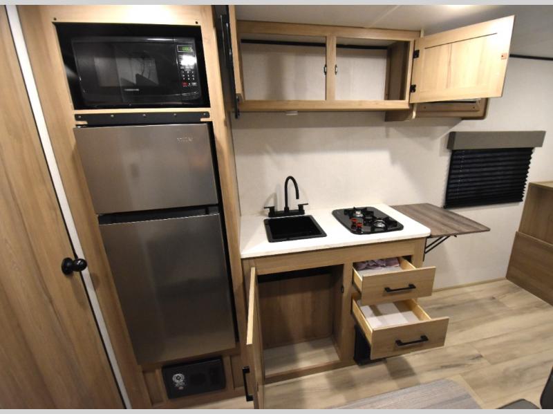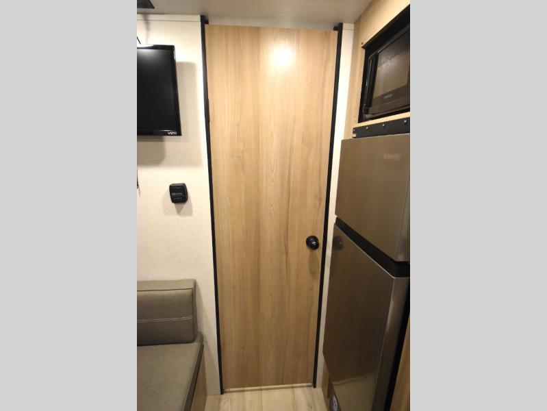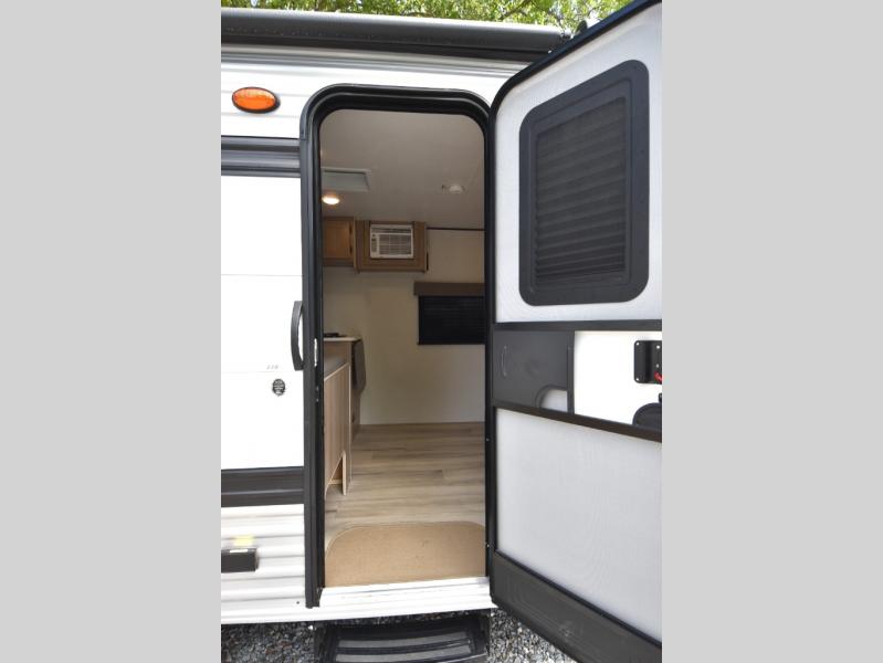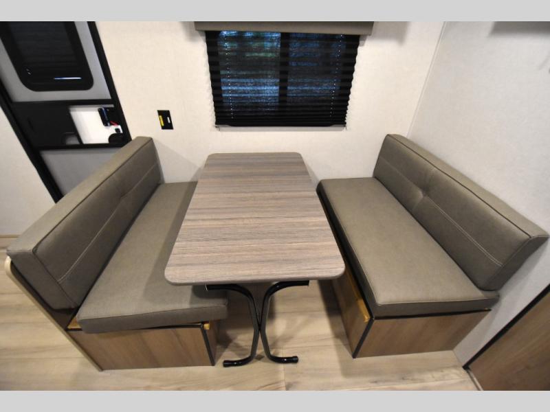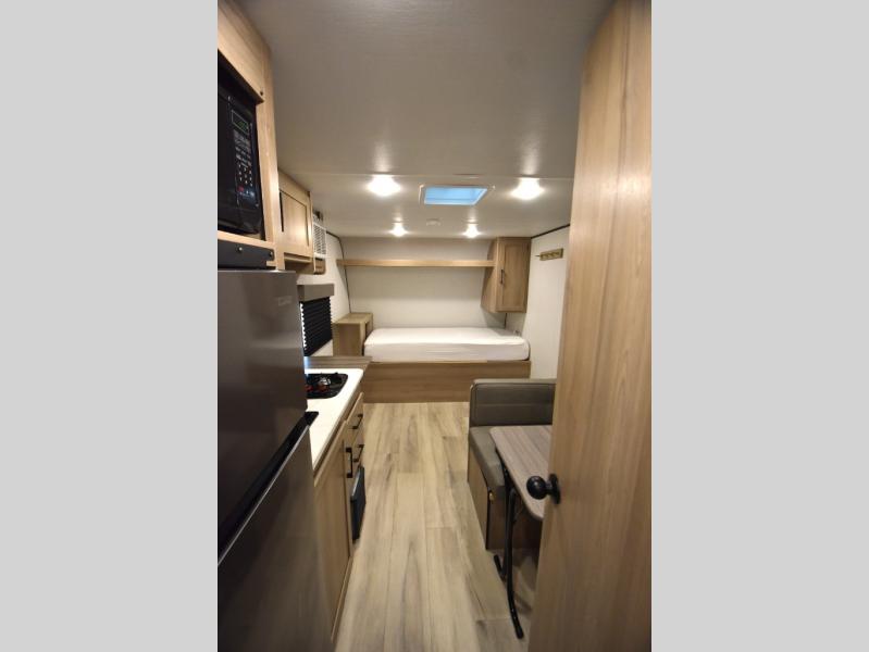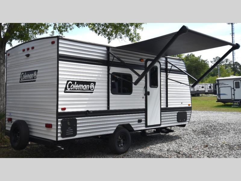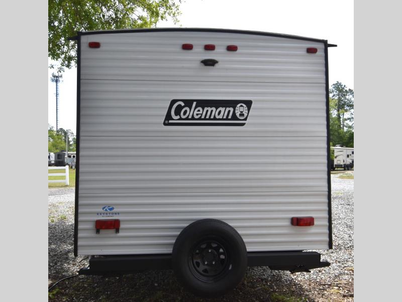 With any Coleman travel trailer, you will experience Keystone's quality throughout, plus enjoy lightweight towing to the campground or RV park. There is a walkable roof, tinted safety glass windows, and a power awning outdoors for an inviting space to relax. The friction hinge entry door is another convenience you'll appreciate, and there is Furrion backup camera prep if you want the option to make parking easier. Inside, you'll find blackout night shades, a 6' 8" ceiling height, bedside outlets, and many more comforts.