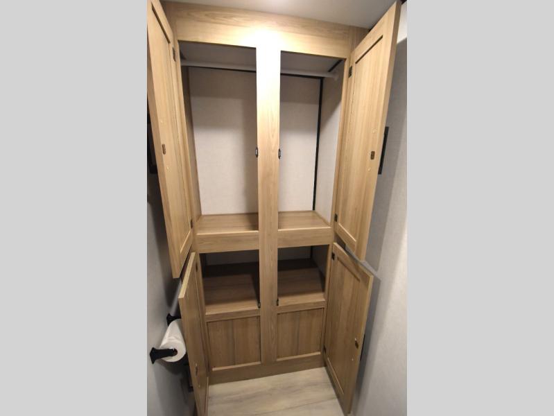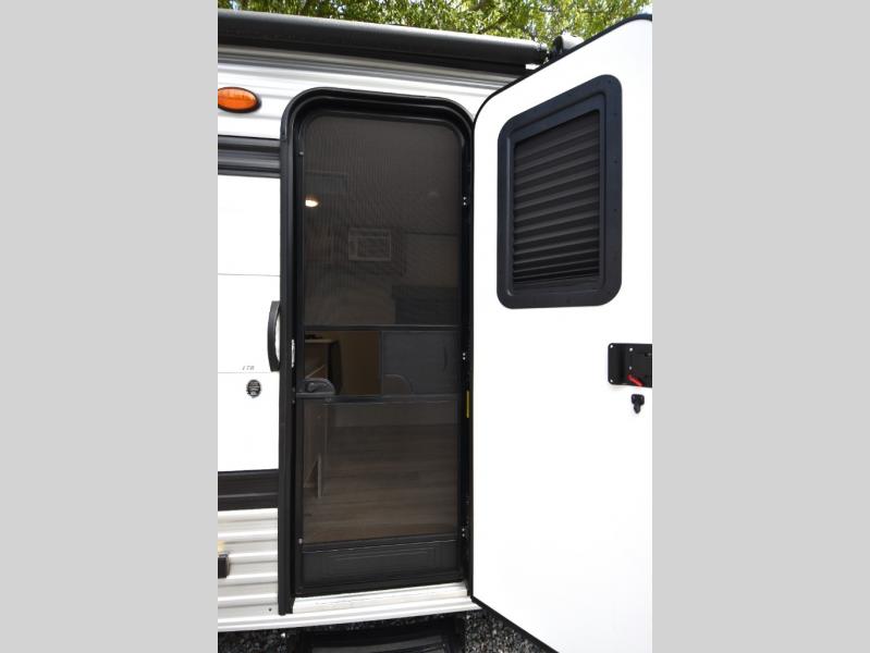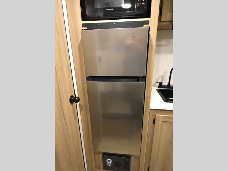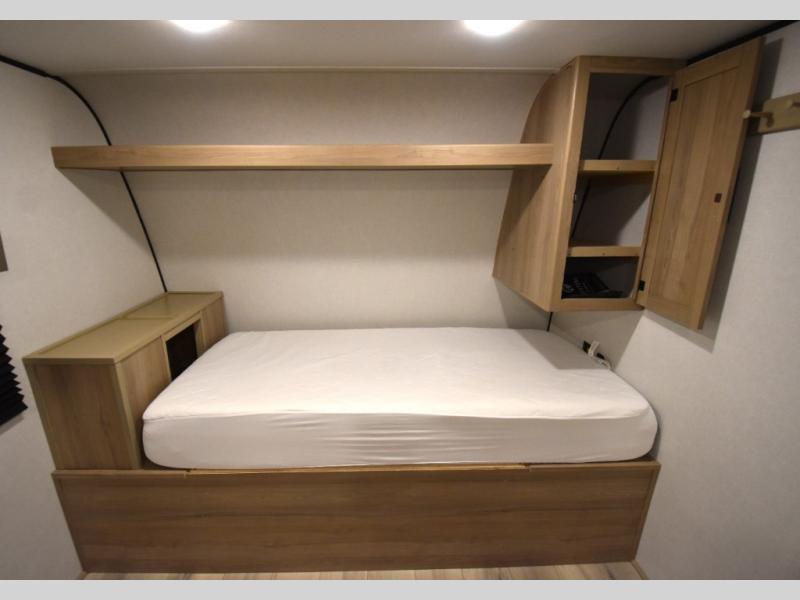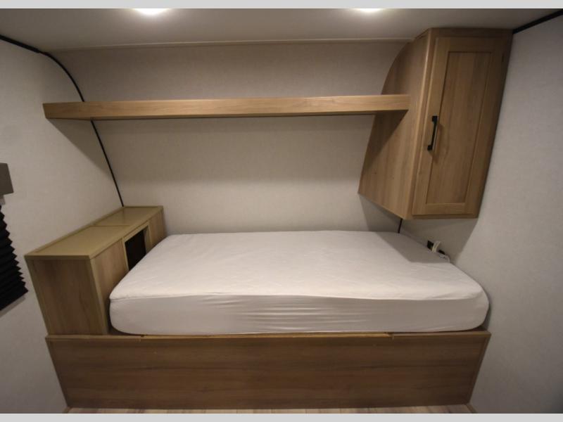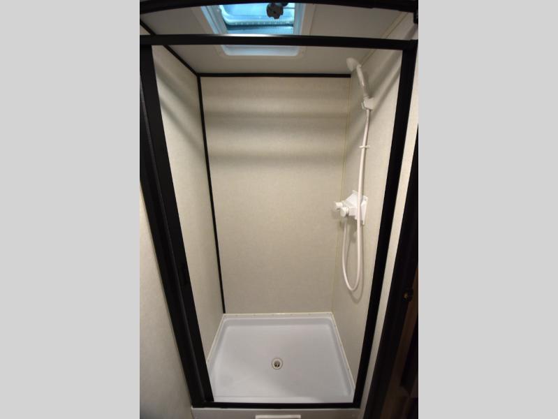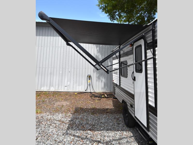 After making dinner on the two burner cooktop or microwave, you can dine at the booth dinette or outside under the 8' power awning if you brought along your camping chairs. Either way you will be comfortable and the dinette can even be converted to sleep one person if needed. After playing outdoors all day, everyone can return to get cleaned up in the full rear bath including a shower. There is even a linen closet and space for some clothes that hang. You may then fall asleep on the queen bed up front or the dinette once converted so you can start enjoying the outdoors again the next day.