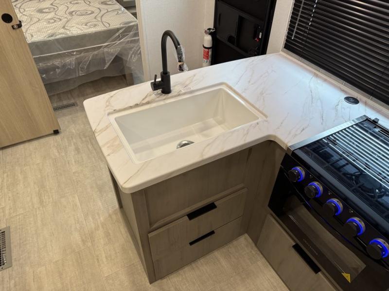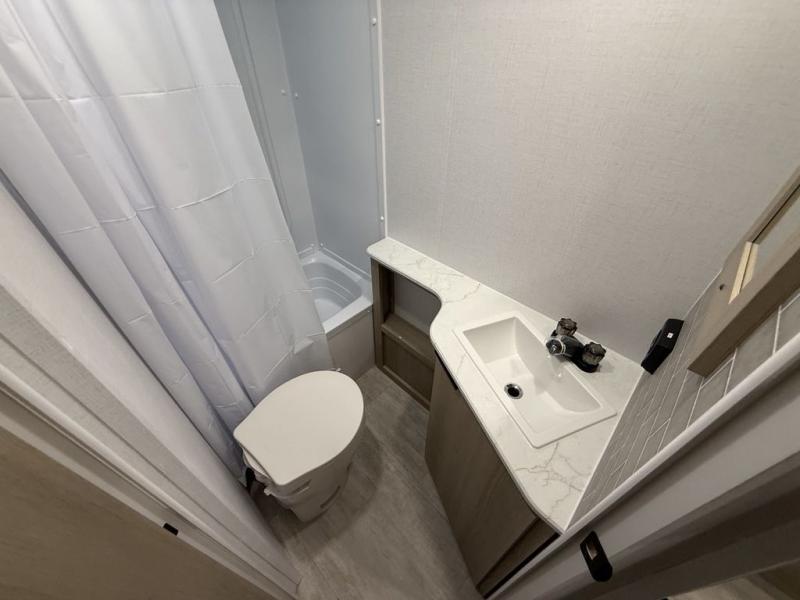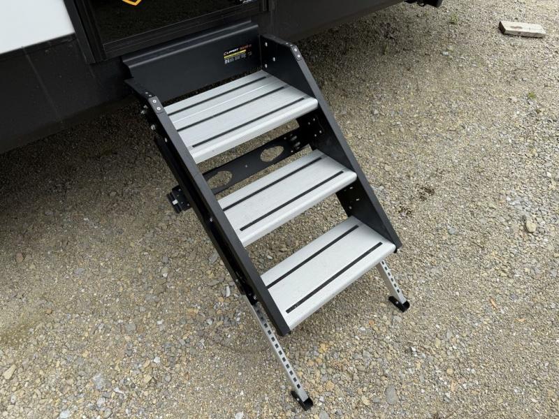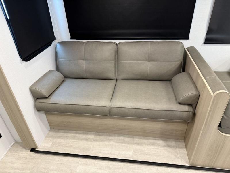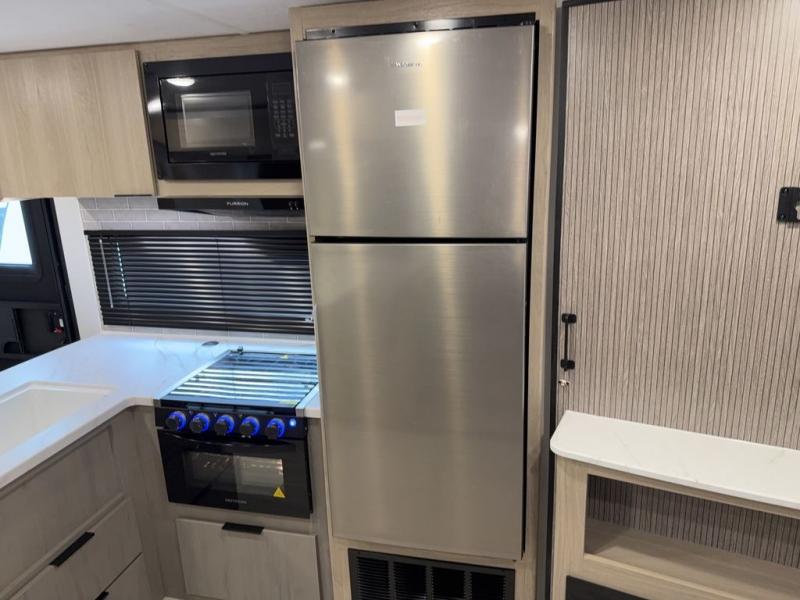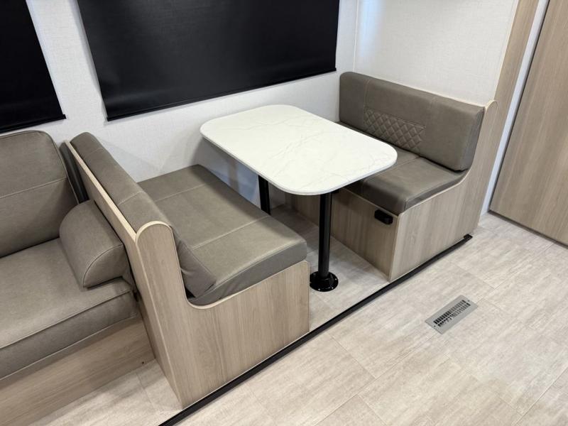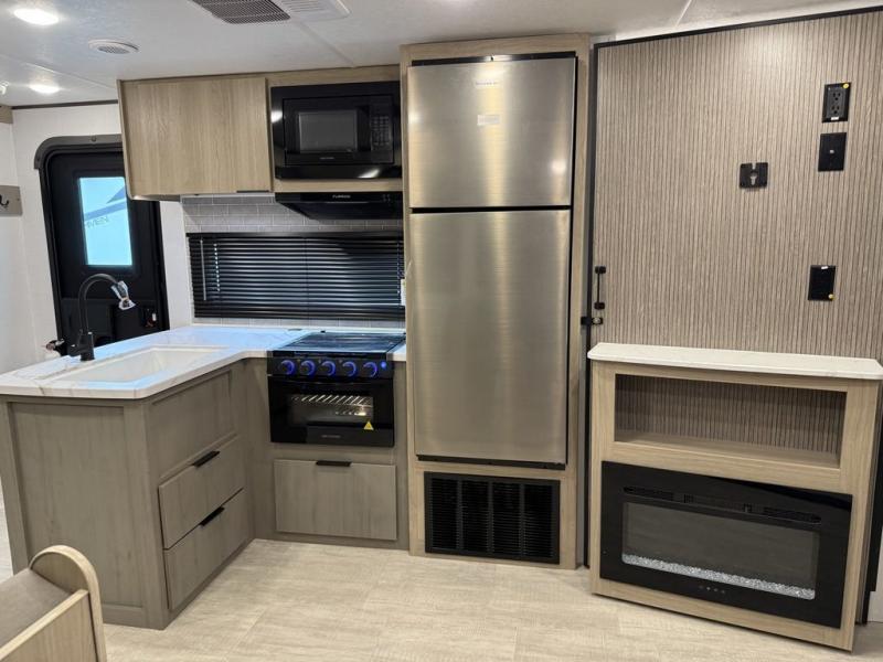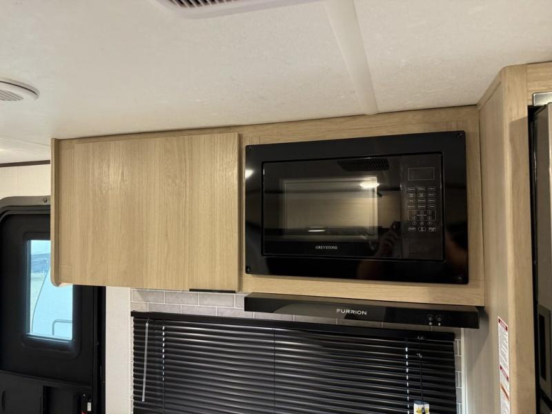 This bunkhouse model is perfect for weekend excursions or extended getaways at your favorite state park. You will have your own queen bed up front with storage space for your things, and the double-size bunks in the back will be perfect for guests. Prepare your meals on the cooktop or in the microwave oven, and you can dine together at the booth dinette. The dinette can also be used as additional sleeping space for one guest or two kids. Outside, a 14' power awning will provide some shade, and an outdoor refrigerator will keep cold drinks close by!