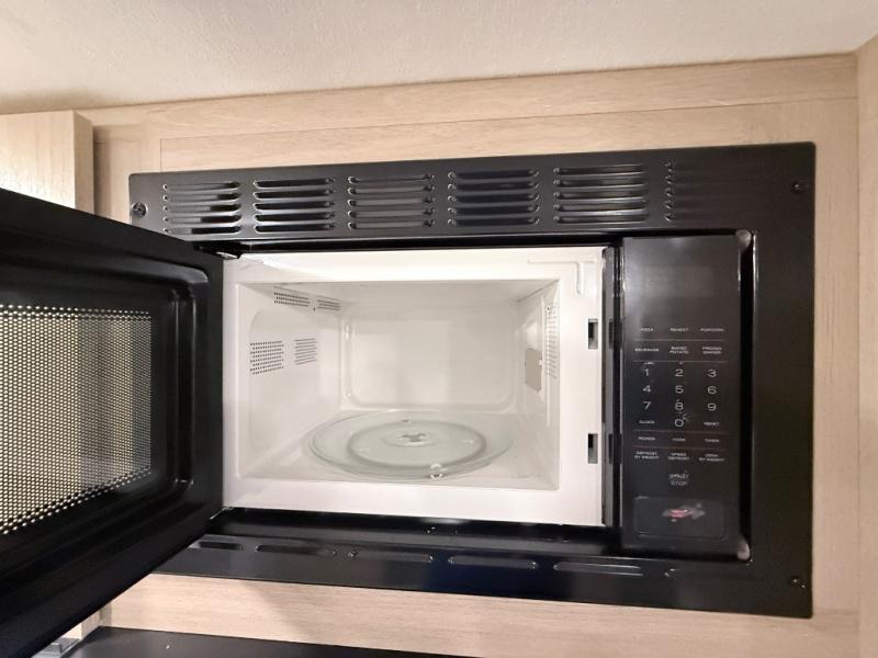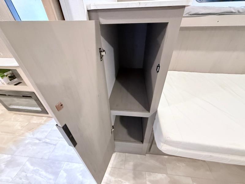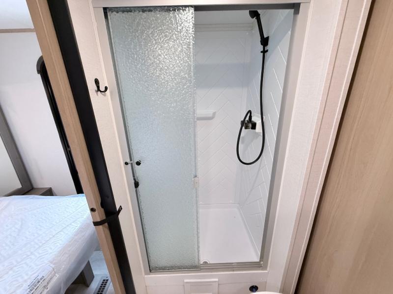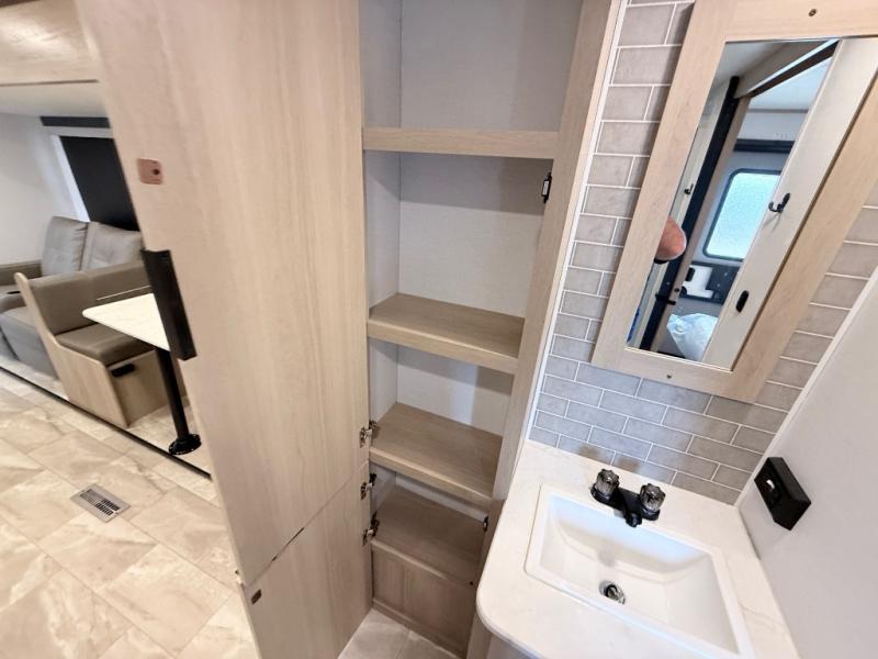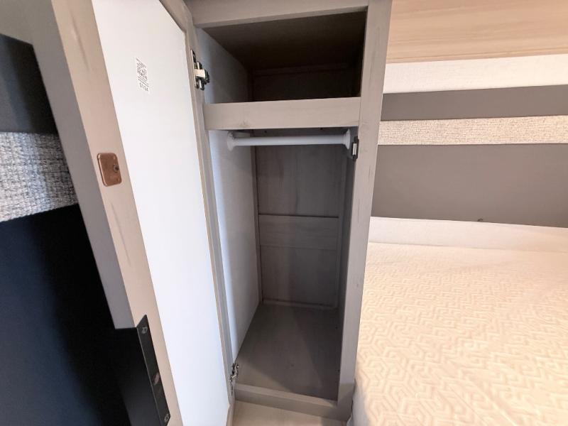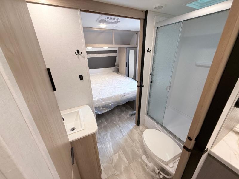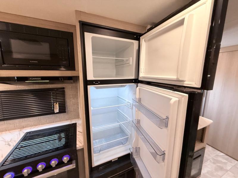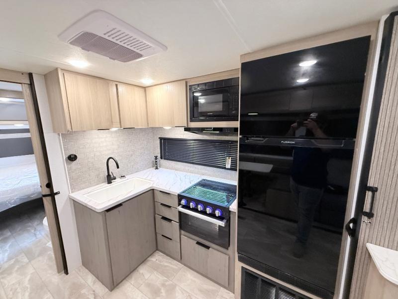 It will be so easy camping with friends in this spacious travel trailer with double slides and a rear private bunkhouse. Once you're set up at the campsite, prepare lunch on the outside kitchen and relax under the 18' power awning with LED lights. You may just decide to grab the fishing poles from the pass-through storage and head down to the river. Everyone can meet in the main living area around the U-shaped dinette or on the jack knife sofa with a foot rest, and the fireplace here will make it feel more like home.