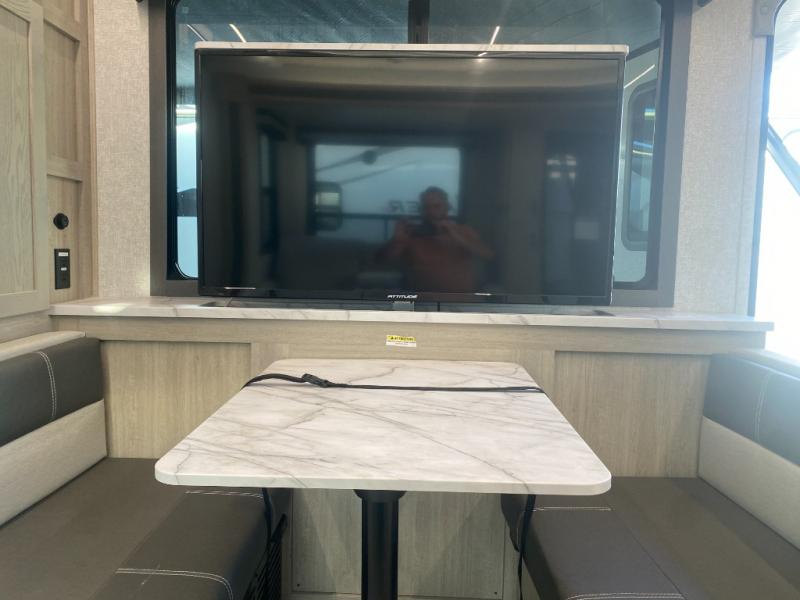 Each Alta travel trailer or toy hauler by EAST TO WEST is constructed with a 5" vacuum bonded roof, an enclosed and heated underbelly, and diamond plate front rock guard for added protection. Outside, you'll find marine-grade exterior speakers, a universal docking station, and back-up camera prep that can be added to make maneuvering in and out of campgrounds easier than ever. Inside, there are 4k interior LED lights, solid pressed membrane countertops, black roller shades, and many more interior comforts you are sure to love.