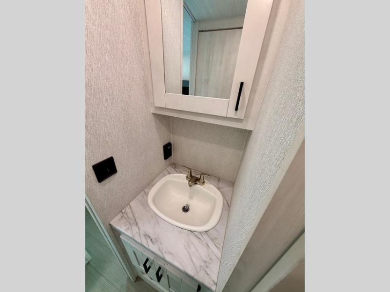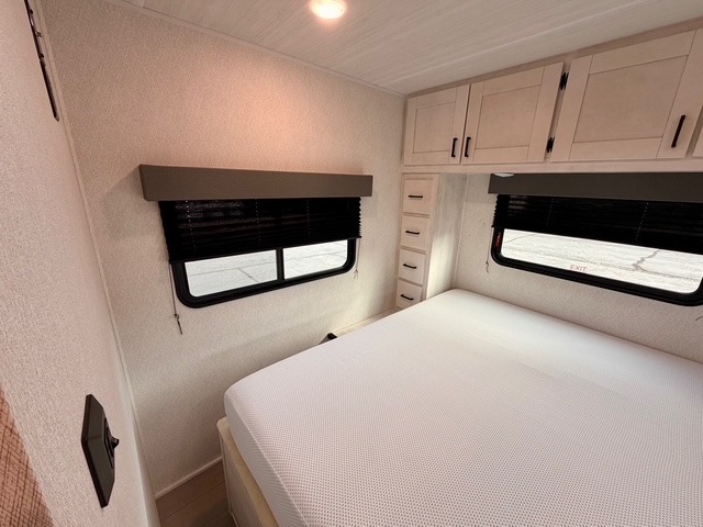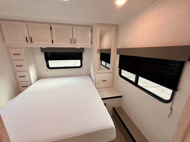 When traveling you want comfort no matter if you are driving, riding, or relaxing once at your campsite. Well, you will have it in this coach! There is a 62" sofa and 42" x 68" booth dinette that can be used for lounging together after an afternoon of walking around the campground, plus the bunk over the cab and the queen-size bed can be utilized if you are too tired to stay up for another minute. Once you are fully rested, head to the kitchen to prepare a delicious breakfast feast with the convection microwave and cooktop. Use the double sink to clean up, and the 10.7-cubic foot refrigerator to keep your perishables fresh. You can even add some extra prep space to this area by pulling out the flip-up countertop. There is also storage all throughout this motorhome with bedside closets, the bathroom shelves, a kitchen pantry, cab storage, and within overhead cabinets.