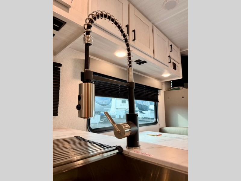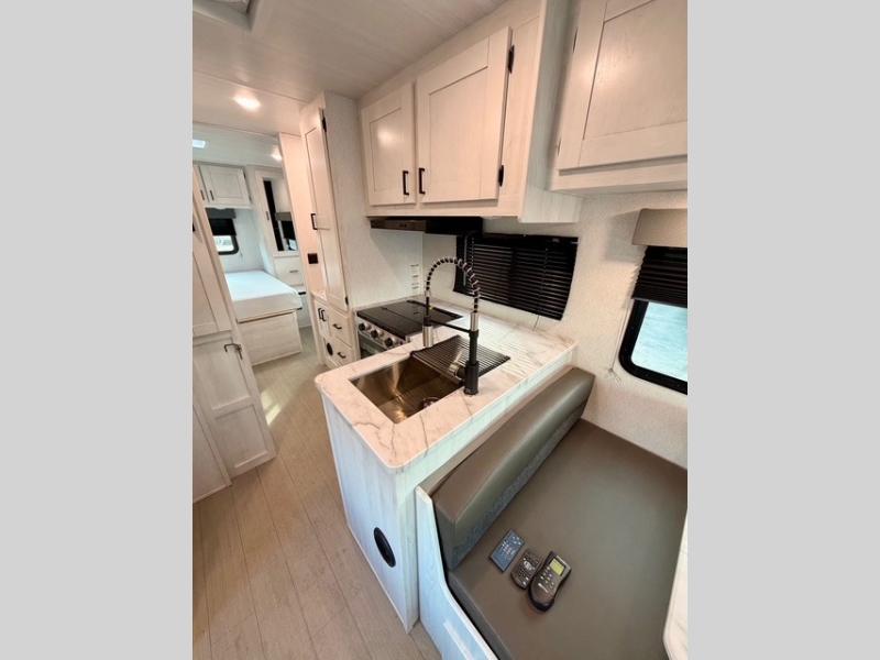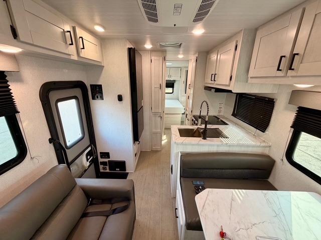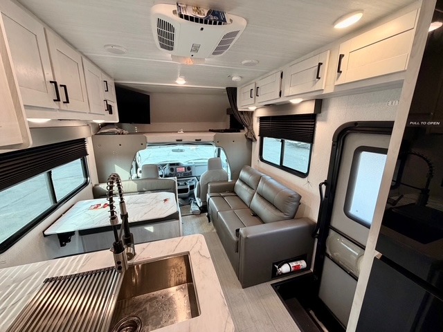 With any Entrada Class C gas motorhome from EAST TO WEST, the construction consists of an automotive painted fiberglass front cap, a Dicor DiFlex ll TPO roof membrane, and Azdel composite sidewalls for added durability. Some of the Entrada value package features include 12V tank heaters to camp during the cooler months, the Winegard Air 360+, plus backup and sideview cameras with a monitor for safety on and off the road. The interior offers a 7-foot interior height for a spacious feel, and 12V USB charge ports will keep your electronics powered up. Choose an Entrada for its tasteful design, attention to detail, bright interior and affordable price-point!