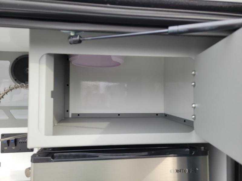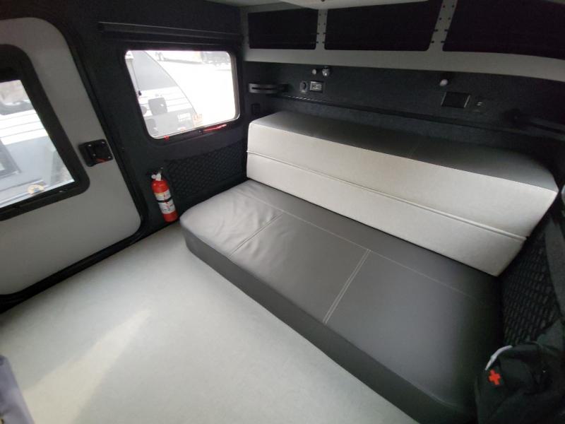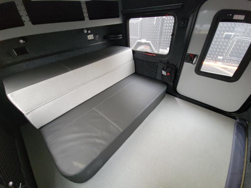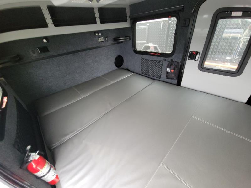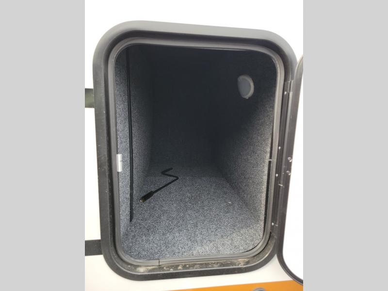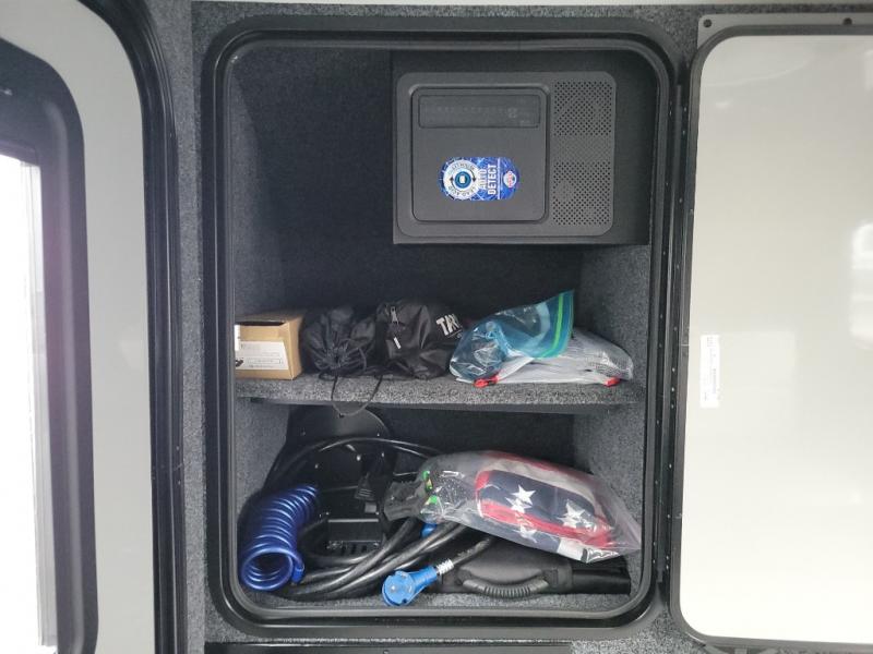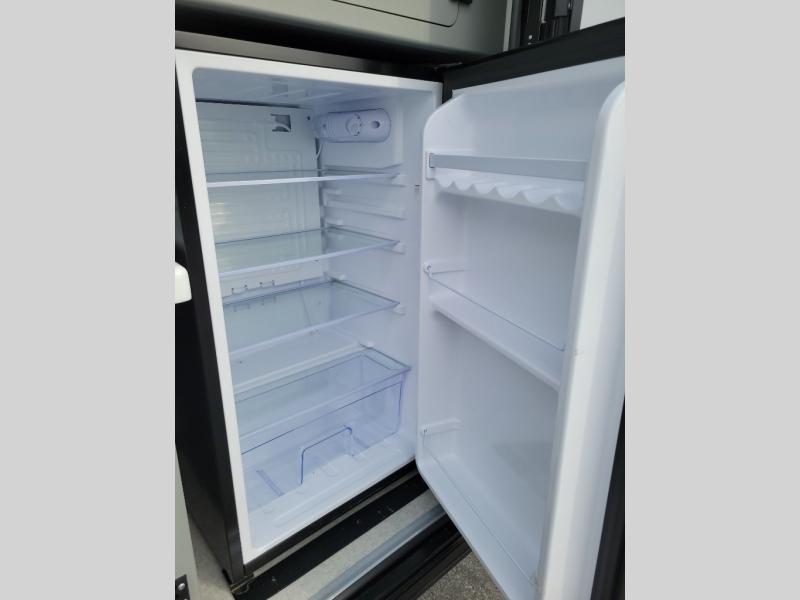 You will be so excited to test out this ROG travel trailer for yourself! The interior has great storage solutions to keep your camp gear secure. The rear outdoor kitchen has convenient amenities to help you eat well while you're away. You'll find a two-burner stove with cast-iron grates and a 3.3 cu. ft. 12V refrigerator to cook and store food. And the queen/futon mattress is sure to bring a great night's rest!