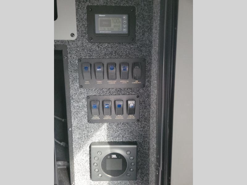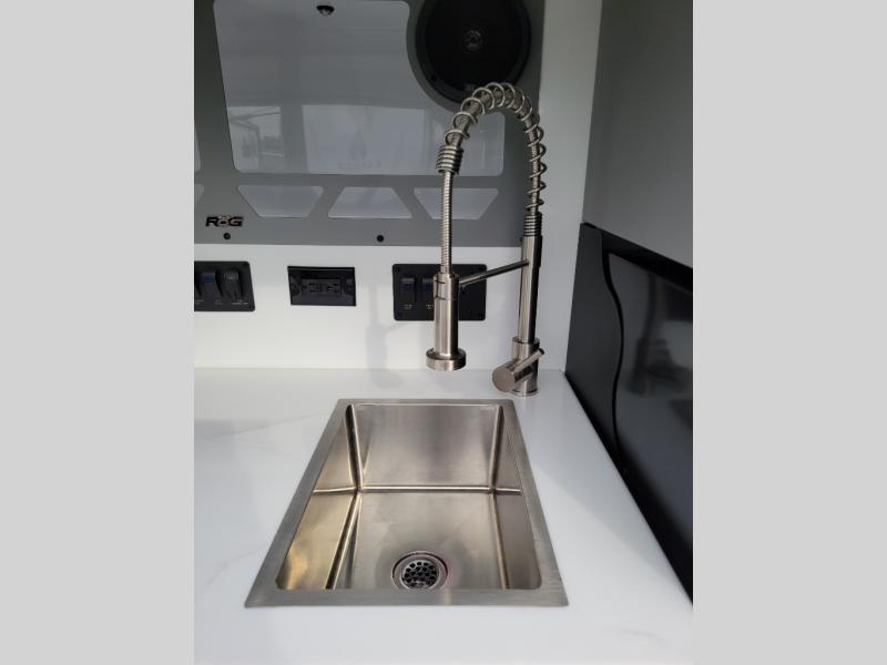 The Encore RV ROG travel trailer and toy hauler expandable has a smaller size and a rugged design so that you can tow with ease and visit remote spots that other campers can't. While you go off-grid, you'll stay comfortable with the amenities provided by the ROG. These lightweight models are 100% wood free for added durability, along with an all-aluminum frame, a one-piece fiberglass roof, and tri-bond construction. You will love the premium components throughout, such a JBL, Azdel, and Dexter brands, and each model also includes solid surface countertops with no wood substrate.