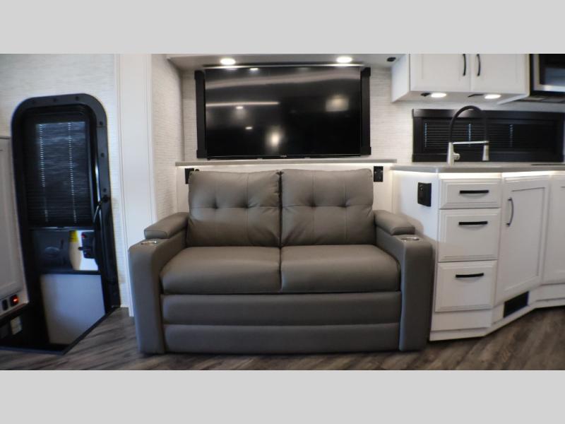 Strength and luxury come together perfectly to bring you the Accolade Super C diesel motorhome by Entegra Coach. The E-Z Drive Premier includes a computer-balanced driveshaft, a heavy-duty rear stabilizer bar, SACHS shocks, and more to provide a smooth drive. You'll be able to feel the power behind the Cummins ISB 6.7L diesel engine with 360 HP and 800 ft. lb. torque, plus each model sits on the advanced Freightliner S2RV chassis. The cockpit is every captain's dream with its Sony infotainment center, backup and side-view cameras, 6-way power driver and passenger seats, and much more. Step inside to find vinyl plank flooring, LED-lit, solid-surface kitchen countertops, and an electric fireplace to name a few comforts. The Accolade also includes many convenient amenities to make each trip enjoyable, like the water filtration system, the Winegard in-motion satellite dish, and the automatic hydraulic leveling jacks!