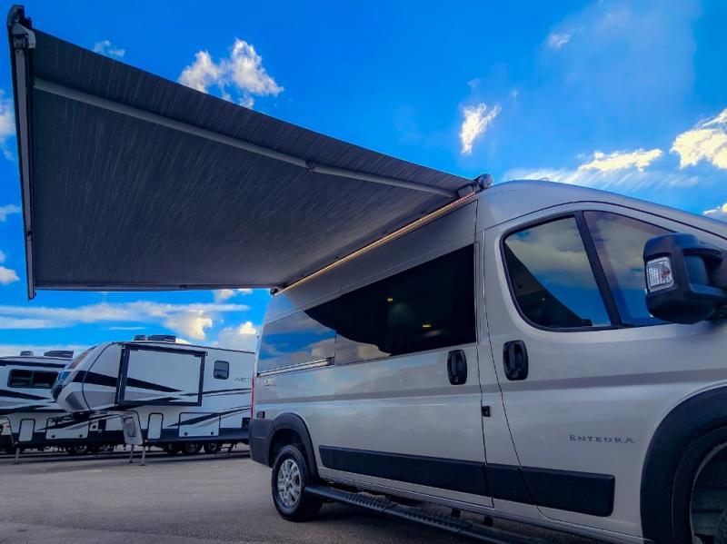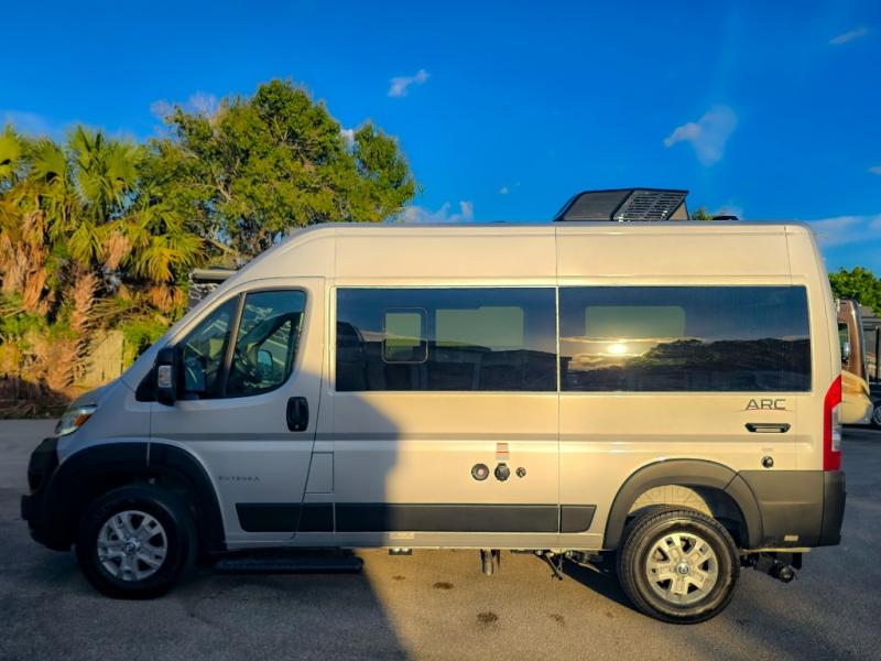 The ARC Class B gas motorhome by Entegra Coach lets you explore the great outdoors in comfort and style! This agile camper van sits on a durable RAM ProMaster 1500 cargo van chassis with a 3.6L V6 24V VVT 276 engine, and features an exterior length under 18 feet for easy maneuvering in the city or on open roads. There are custom-molded ABS interior wall panels for added durability, and the LED-lit running boards are sure to be eye-catching. The exterior also includes automatic high-beam headlights, a chrome grille package, and a Thule patio awning with an LED light strip to make your outside time enjoyable. You will appreciate having an Aqua-Hot GEN-1 hydronic water and heating system onboard, along with two 12V AGM house batteries, and an Onan 2,800W generator to keep your adventures going. The ARC's interior will have you feeling at home with residential vinyl flooring, high-intensity LED ceiling lights, and decorative window valances with day/night roller shades. There are also convenient cockpit features that include a 10.1" Uconnect 5 NAV infotainment center, a ParkView rear backup camera with dynamic gridlines, a push-button start, and more!
