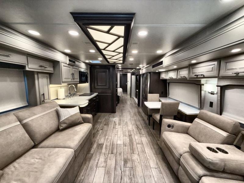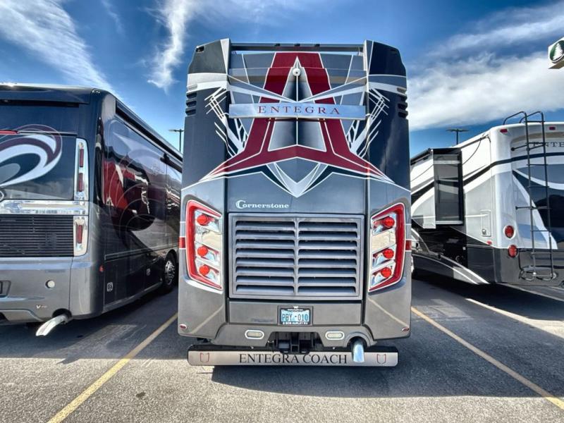 Each Cornerstone Class A diesel motorhome by Entegra Coach is packed with luxury features to make each trip memorable! The Spartan K3 raised-rail chassis provides a strong foundation, and the Cummins 605 HP engine can power your many excursions. You will appreciate the collision avoidance system with collision warning, adaptive cruise control, and electronic stability control, plus there are six HD cameras included in the surround view system for easy maneuvering in and out of campgrounds. The interior is designed to make you feel at home with premium leather Crown Compass furniture, hand-laid porcelain tiled floors, a Personal Comfort A5 king-size mattress, and many more residential features. Additional features include a portable Shark vacuum cleaner, an Aqua-Hot 600D hydronic water and heating system, stylish interior decor options, and more! The luxury-packed amenities don't stop there! Outside you'll find a heated exterior utility center, two power slide out basement storage trays, (2) 200W solar panels, and hot and cold water hook-up in the front cap area with a 30 ft. quick-disconnect hose so you can easily keep the front of your unit clean!
