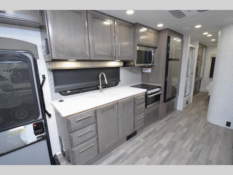 Step inside and feel right at home with a fully equipped kitchen featuring a Furrion cooktop and oven, a roomy tri-fold sofa or optional theater seating, and a private bathroom setup that keeps your mornings stress-free. Whether you are traveling solo, with family, or friends, the Esteem 29V offers flexible sleeping arrangements and modern conveniences for all.