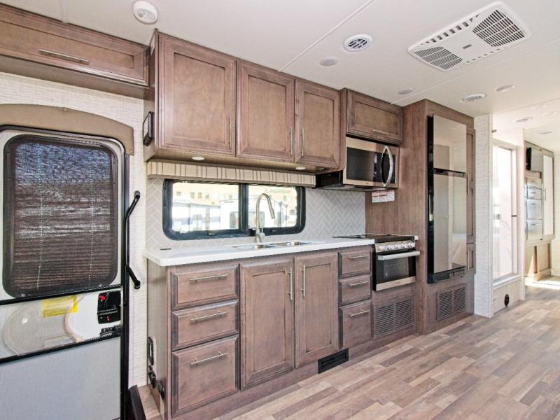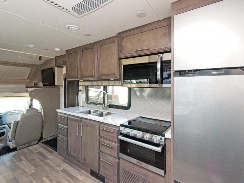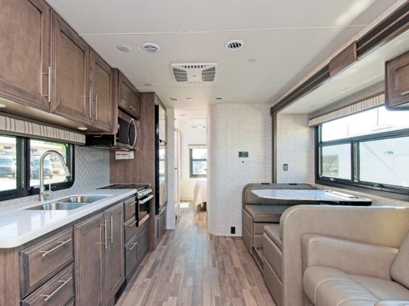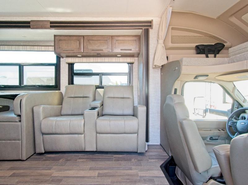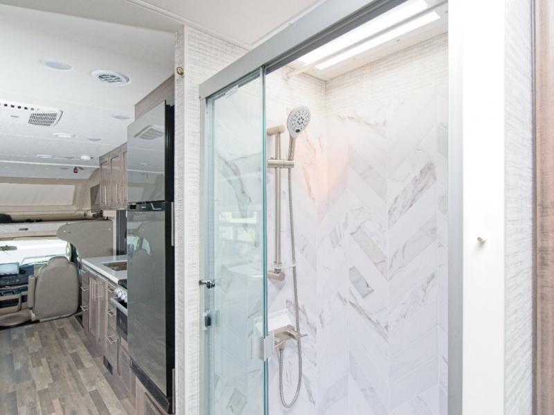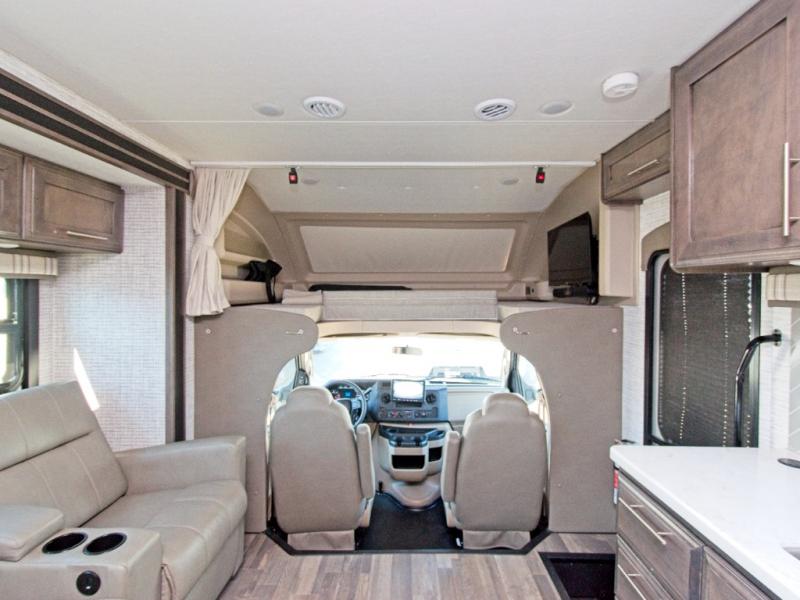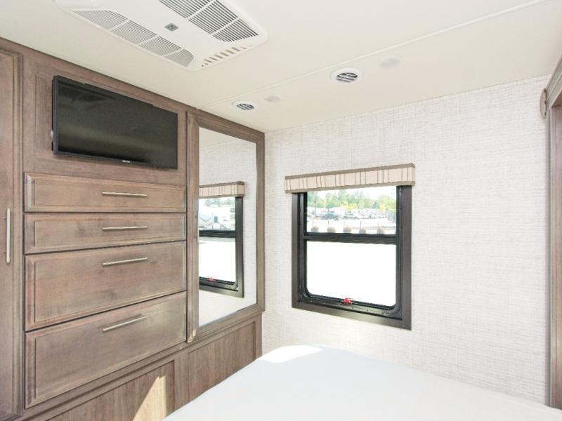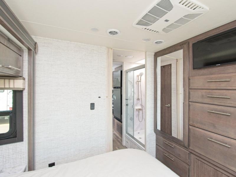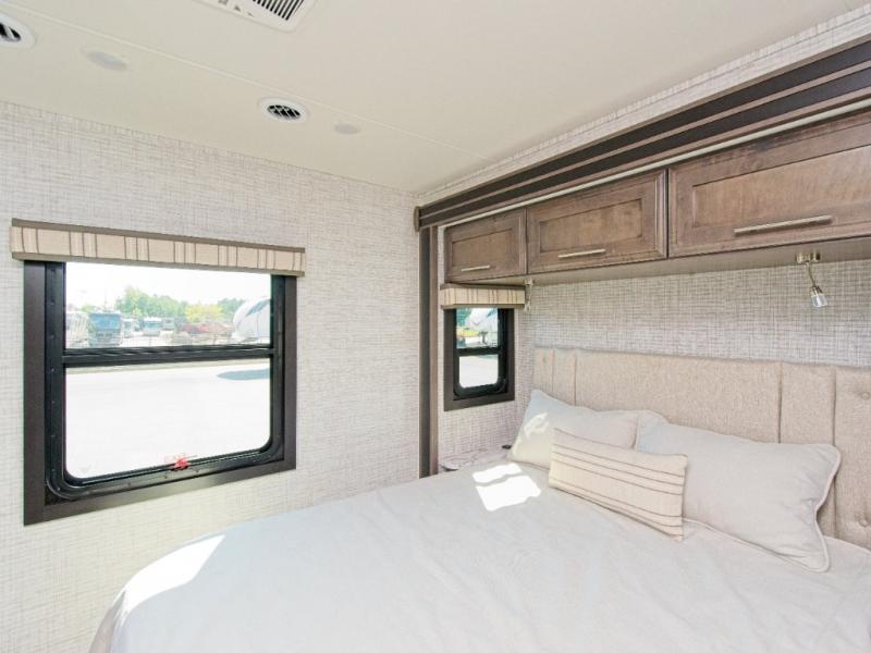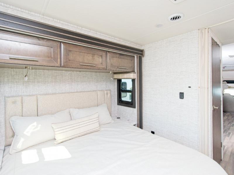 The Entegra Esteem 29V offers the perfect blend of residential comfort and mobile convenience. With dual slide-outs, this Class C motorhome opens up to a spacious interior ideal for relaxing, entertaining, or unwinding after a day of adventure. The rear private bedroom features a queen bed slide and dual wardrobes, with an optional TV for cozy movie nights.