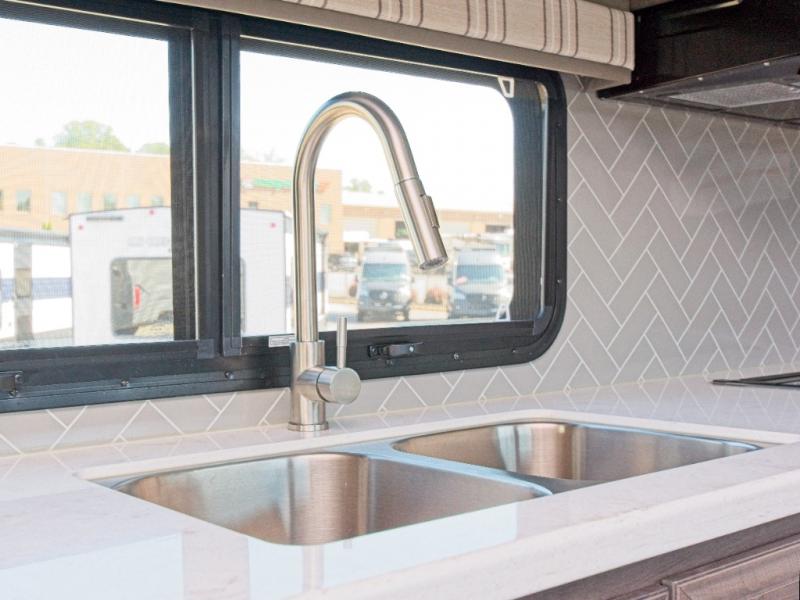 Built with E-Z Drive Elite, the Esteem delivers a smooth ride thanks to its computer-balanced driveshaft, Koni FSD shocks, Hellwig helper springs, and heavy-duty rear stabilizer bar. Automatic leveling jacks make setup quick and easy, while the custom-molded ABS cab surround with panoramic window and power shade offers stunning views and privacy.