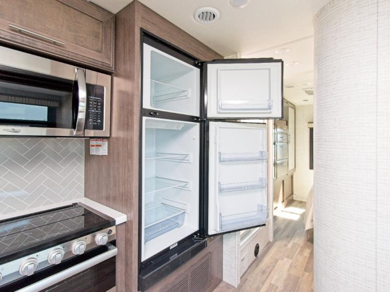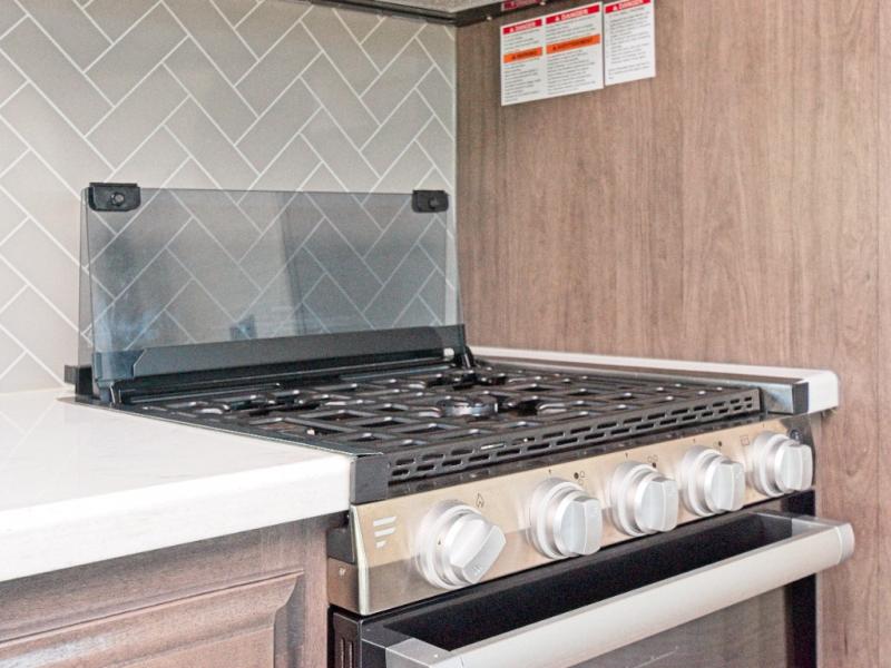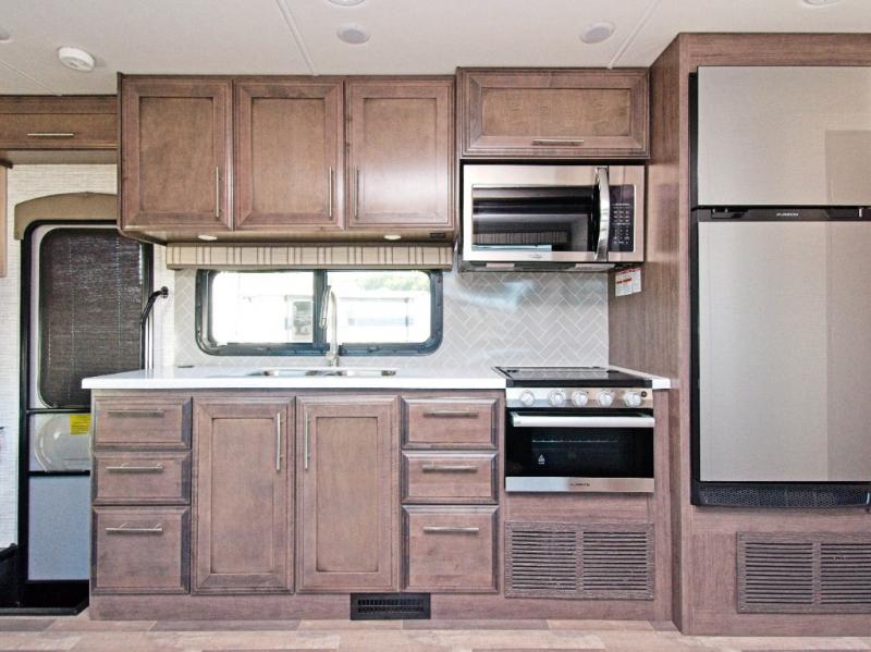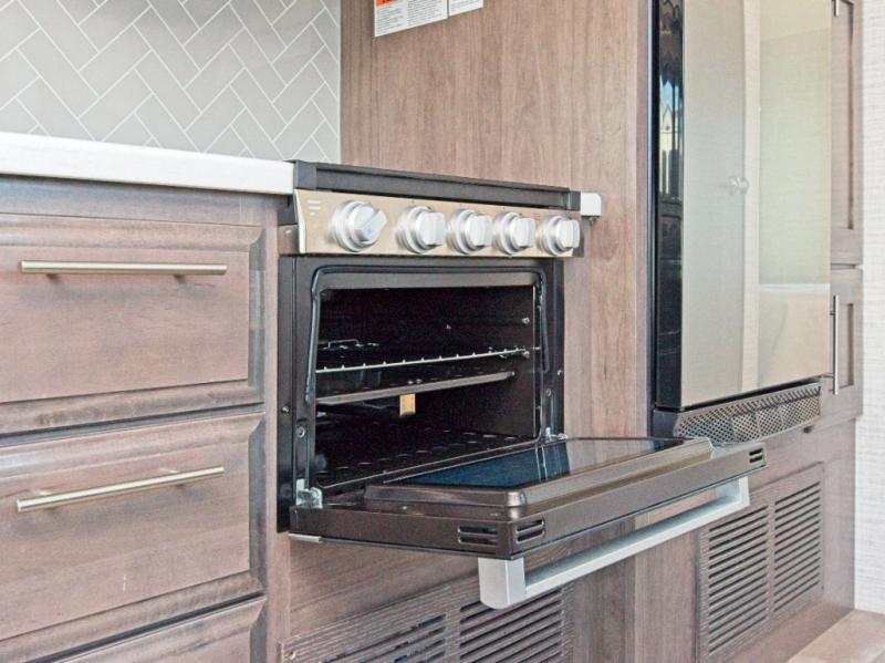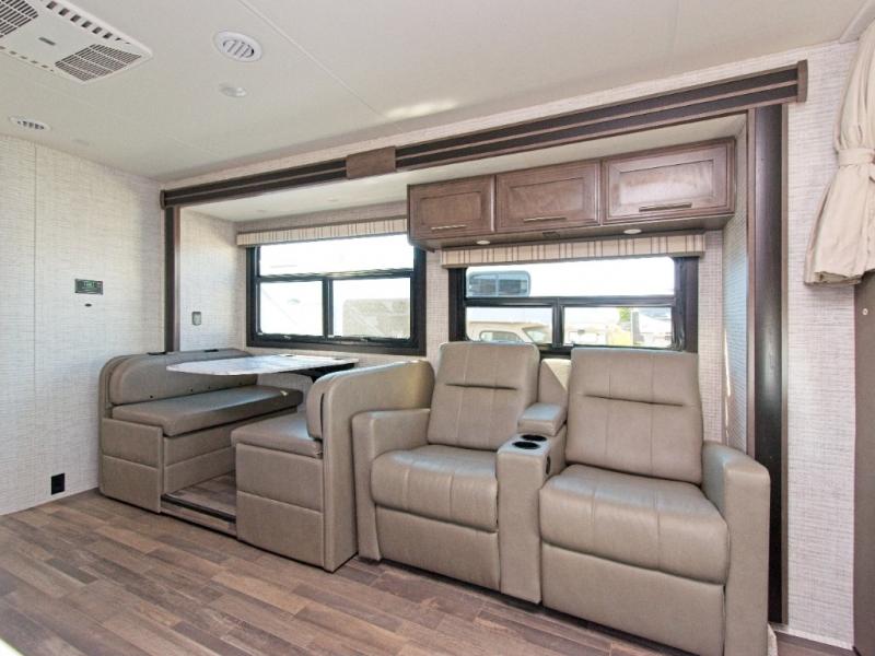 Cook up your favorite meals with the Furrion all-in-one cooktop and oven, and enjoy them in comfort at the dinette. Outside, the LED HD Smart TV under the electric awning creates the perfect outdoor entertainment setup.