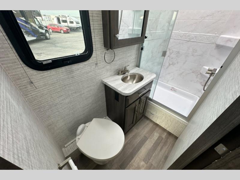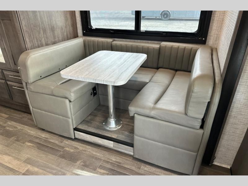 Looking to travel to see family and friends while stopping along the way to take in the scenery? Need comfortable accommodations for you and another plus extra sleeping space when you have overnight guests? This coach provides a full-wall slide for more interior floor space and includes a queen bed for a good night's sleep, a wardrobe for clothing, plus a U-shaped dinette and pantry. The dinette doubles as sleeping space, plus you have a cab-over bunk. The cook will have everything nearby to whip up meals including a residential-size microwave, and the full bathroom allows everyone to skip the public facilities along the way.