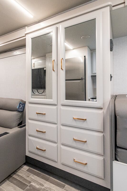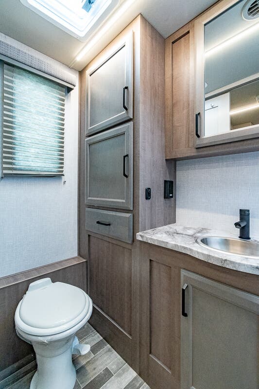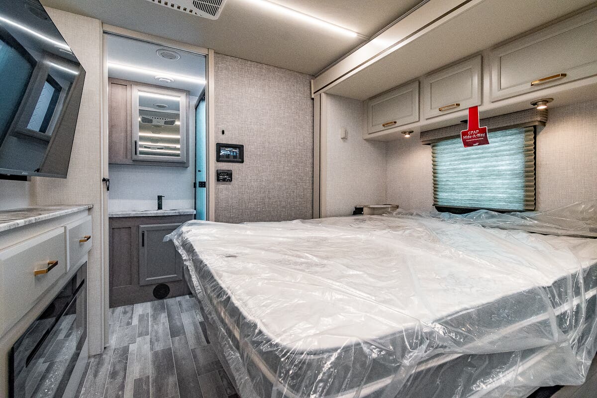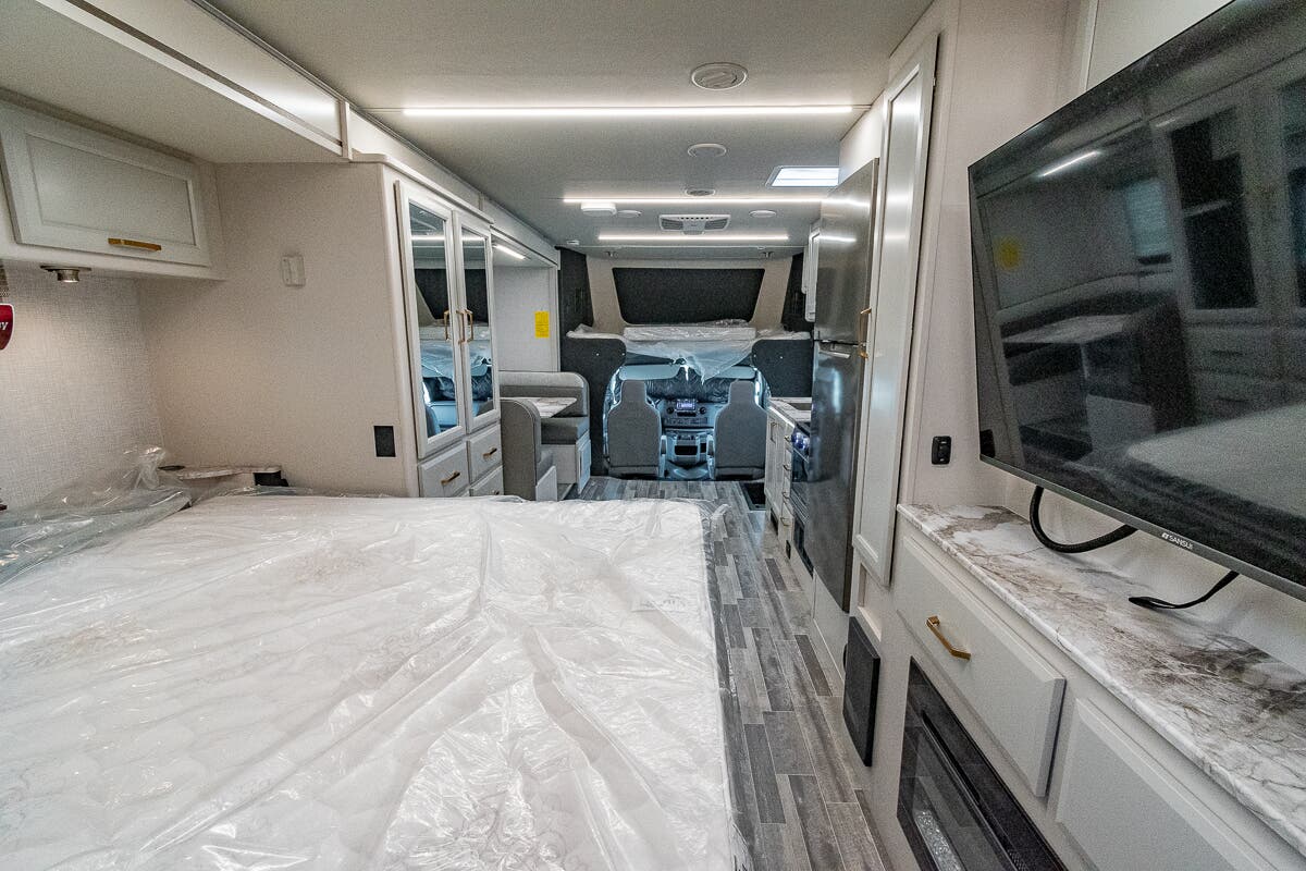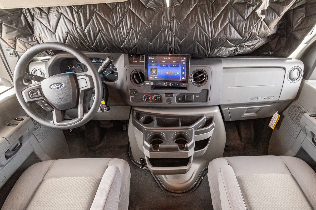 With any Altitude Class C gas motorhome by Fleetwood RV, you will enjoy unrivaled performance, unbeatable storage, and luxury at every turn! You will love the journey just as much as the destination with reclining back captain's chairs and side view cameras, plus there is a Ford 7.3L V8 engine for power you can feel. Each model features painted steel frame construction with a Powerlock System ll that interlocks the walls to the roof for added durability, along with Vacu-Bond aluminum framed sidewalls, roof, and floor. Outside, you'll find automatic hydraulic leveling jacks, patio lighting, slam latch luggage door handles, and a Winegard Air 360+ that will allow you to stay connected as you travel. Head inside to find Surf-X countertops, slide out fascia with coordinating interior wood color, hidden hinge cabinet doors, kitchen backsplash, and many more comforts!