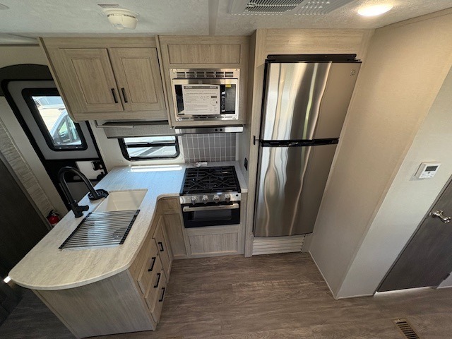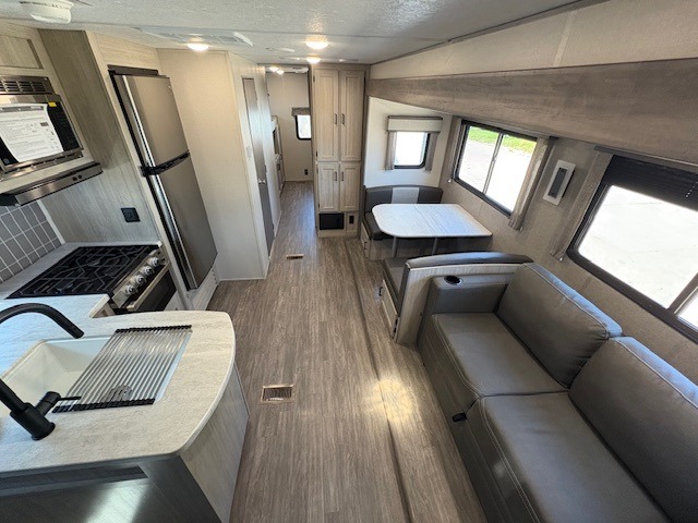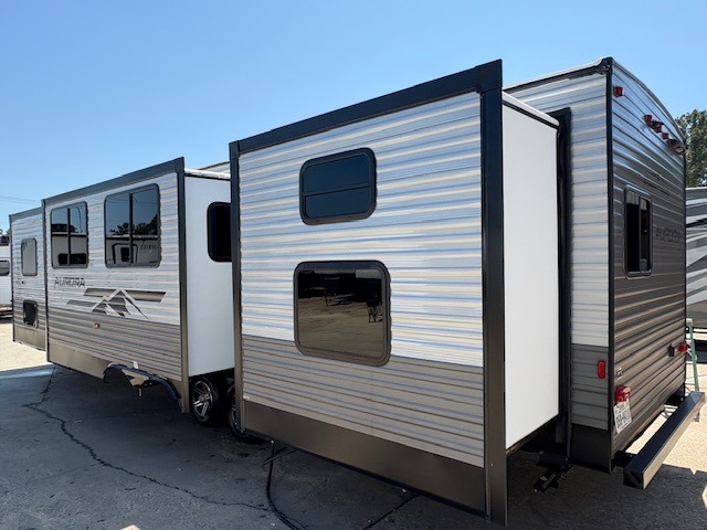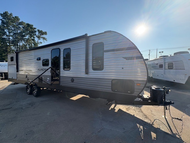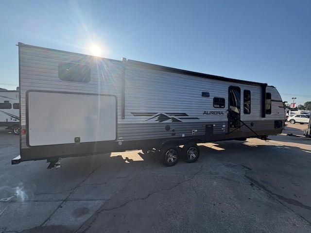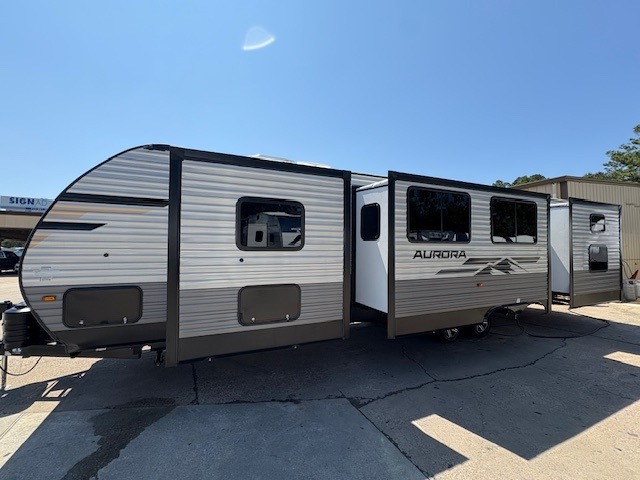 Comfortability, usability, and quality is what you will find in each one of these Forest River Aurora travel trailers, toy haulers or destination trailers! They are designed with a superior build and packed full with industry leading, functional, and distinctive standard features. SolidStep entrance steps and a Safe-T rail door assist on main entry door to help you safely enter and exit the unit. The diamond plate rock guard will protect your unit from road debris and the nitrogen filled radial tires, which keep their pressure longer, offer better fuel economy. You will also find upgraded JBL Elite exterior speakers outside, an electric awning with multicolor lights and remote, plus flush mount baggage doors for easy packing. The interiors are beautifully designed with a deep undermount farm style sink, stainless steel appliances, and linoleum flooring in the slide outs which will be easy to clean. Come find your favorite model today!