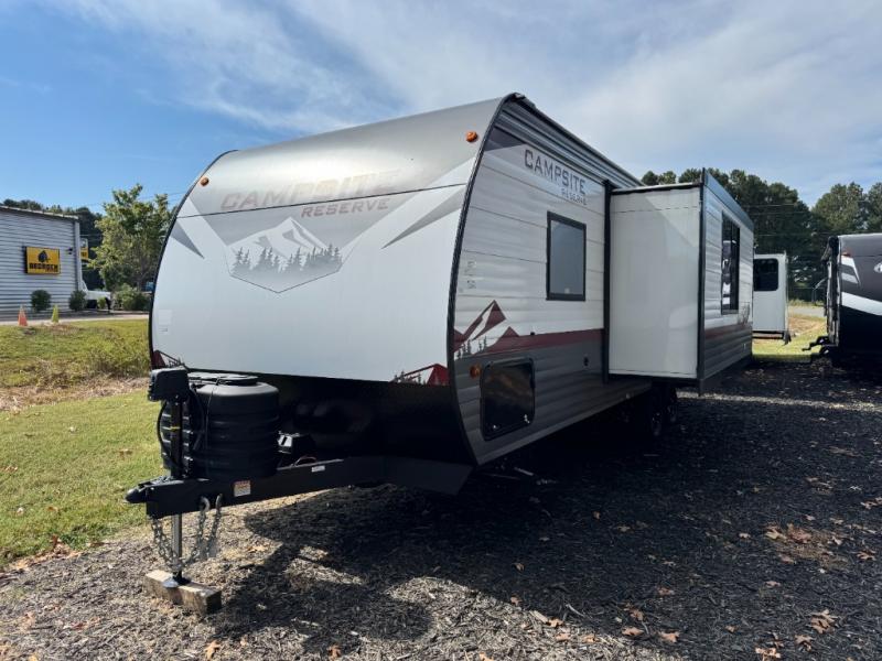 With any Campsite Reserve travel trailer by Forest River, you will enjoy comfort and convenience at every turn! These models feature NextGen stabilizer jacks for a secure set up, diamond plate front for added protection, and a one-piece PVC roof for durability. Inside, you'll enjoy many comforts to make you feel at home, and there is ample storage space for food, belongings, camp gear and more. With a variety of models to choose from, including loft models, you're sure to find a Campsite Reserve for you!