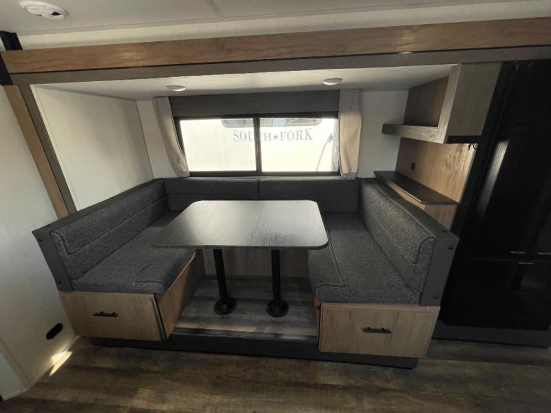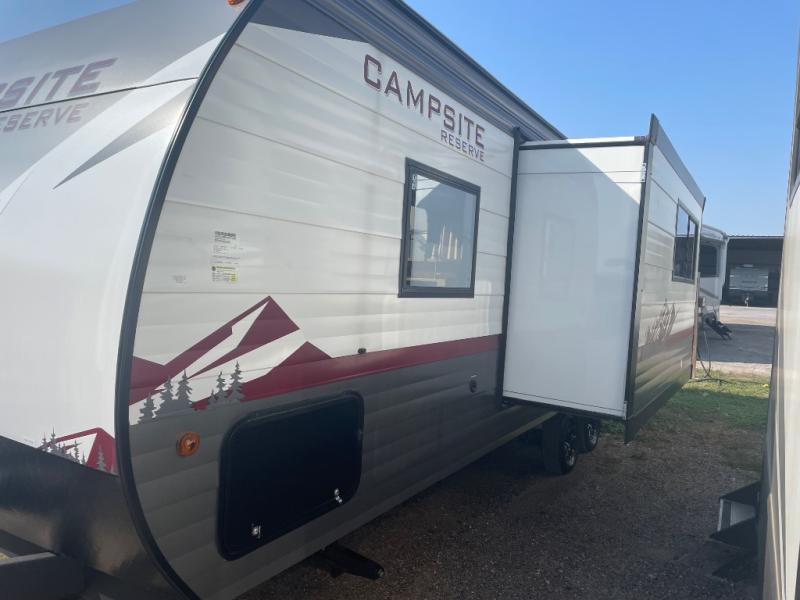 With any Campsite Reserve travel trailer by Forest River, you will enjoy comfort and convenience at every turn! They are built with a diamond plate front, max size square windows, and a one-piece PVC roof for added durability. The mega pass-thru storage will allow you to store camp gear, and the outside shower will come in handy when rinsing off your hiking boots. There are also NextGen stabilizer jacks and stable steps for added stability. Inside, you'll find convenient storage throughout, full bath and kitchen amenities, plus cozy seating and sleeping spaces to name a few comforts!